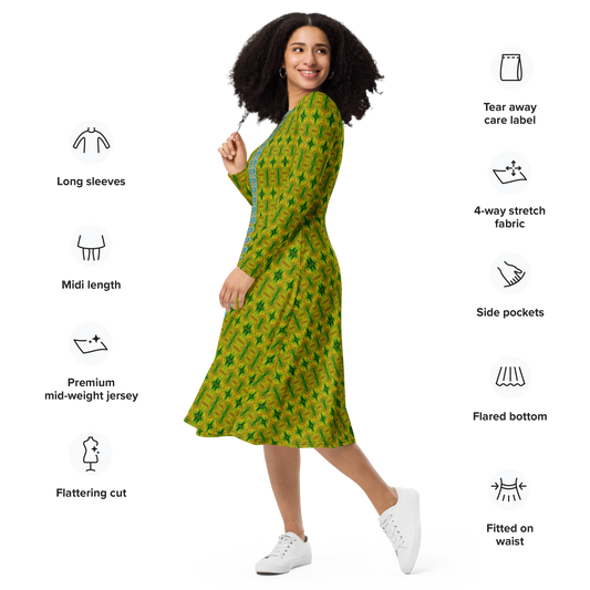 Long Sleeve Midi Dress (Her/Muliebris)(Dragonfly) RJSTH@Fabric#7 RJSTHS2025 RJS