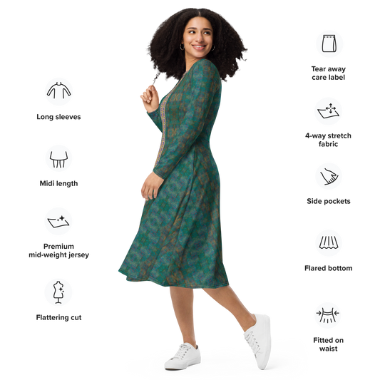 Long Sleeve Midi Dress (Her/Muliebris)(Grail Night Flower) RJSTH@Fabric#4` RJSTHS2025 RJS