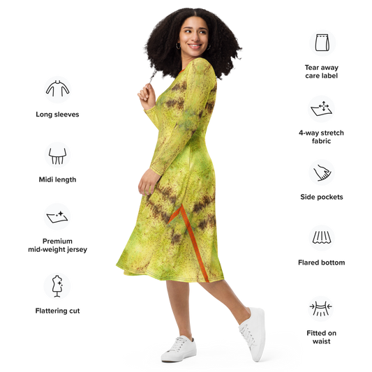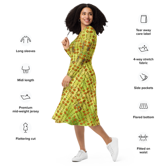 Long Sleeve Midi Dress (Her/Muliebris)(Pollen Dapple) RJSTH@Fabric#2 RJSTHS2025 RJS