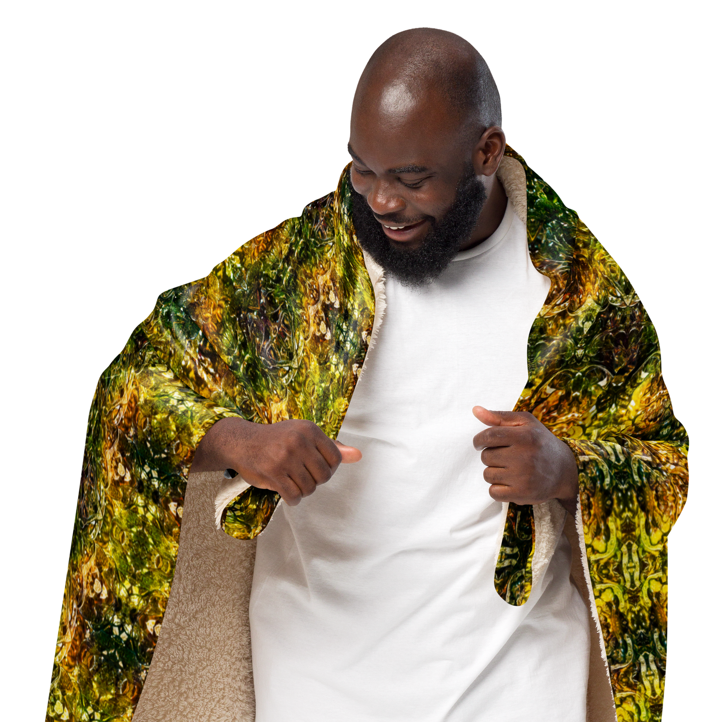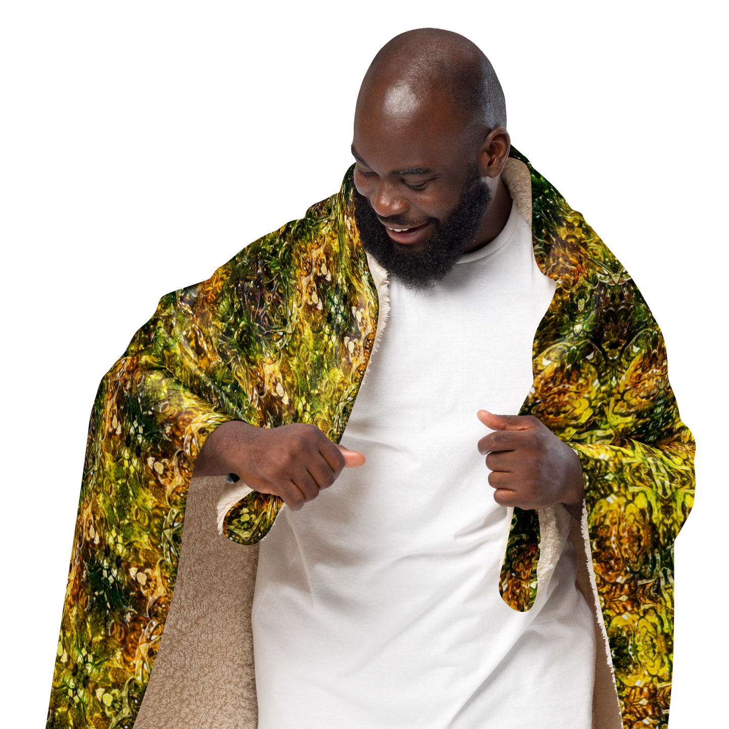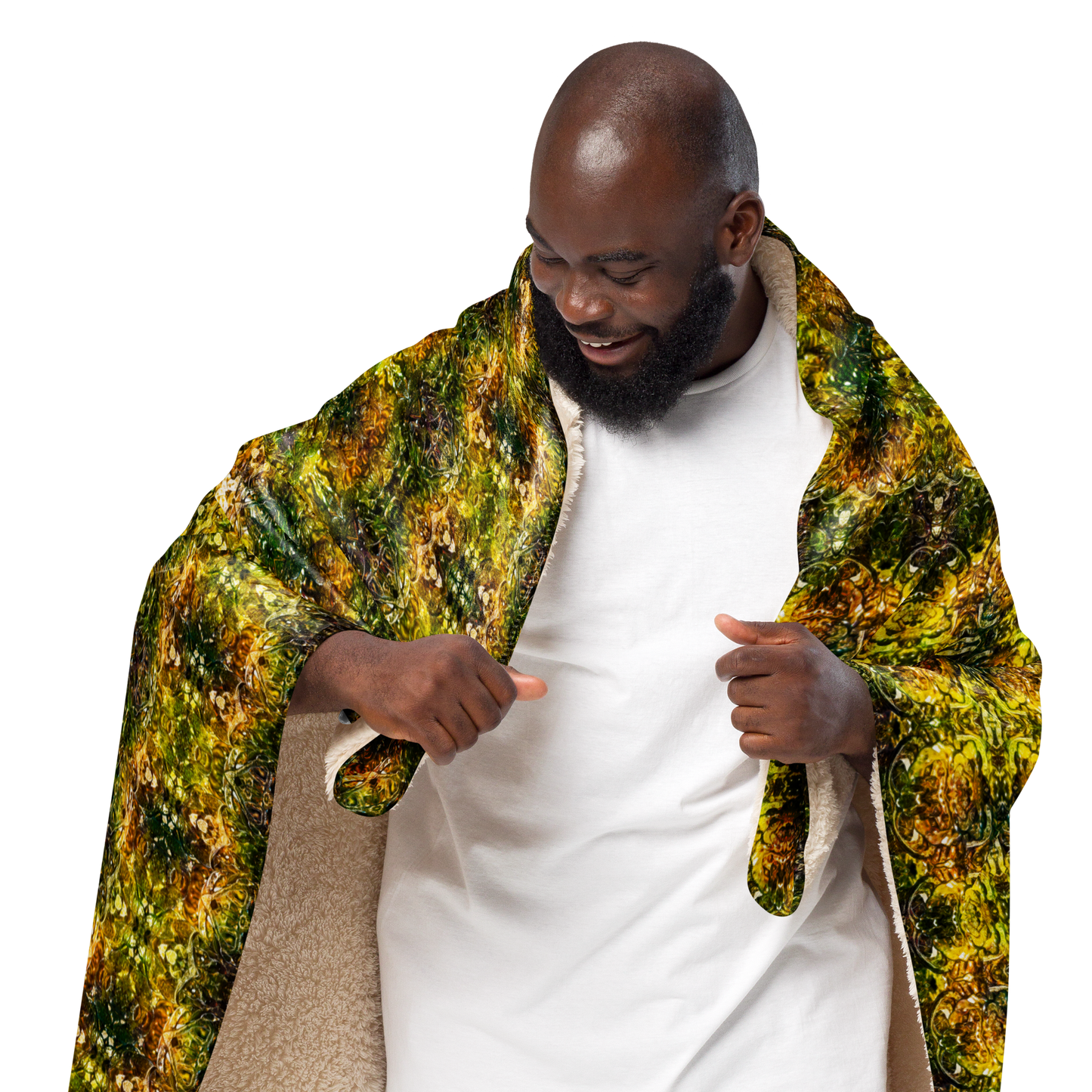 The Cream Sherpa Fleece Blanket is a masterpiece of comfort, sustainability, and art. Crafted by Printful for River Jade Smith Travis “Doby” Huffaker, this blanket showcases original art that brings warmth and beauty into your space. Crafted on demand with a focus on reducing overproduction, it embodies the ethos of River Jade Smithy: artistry intertwined with eco-consciousness.