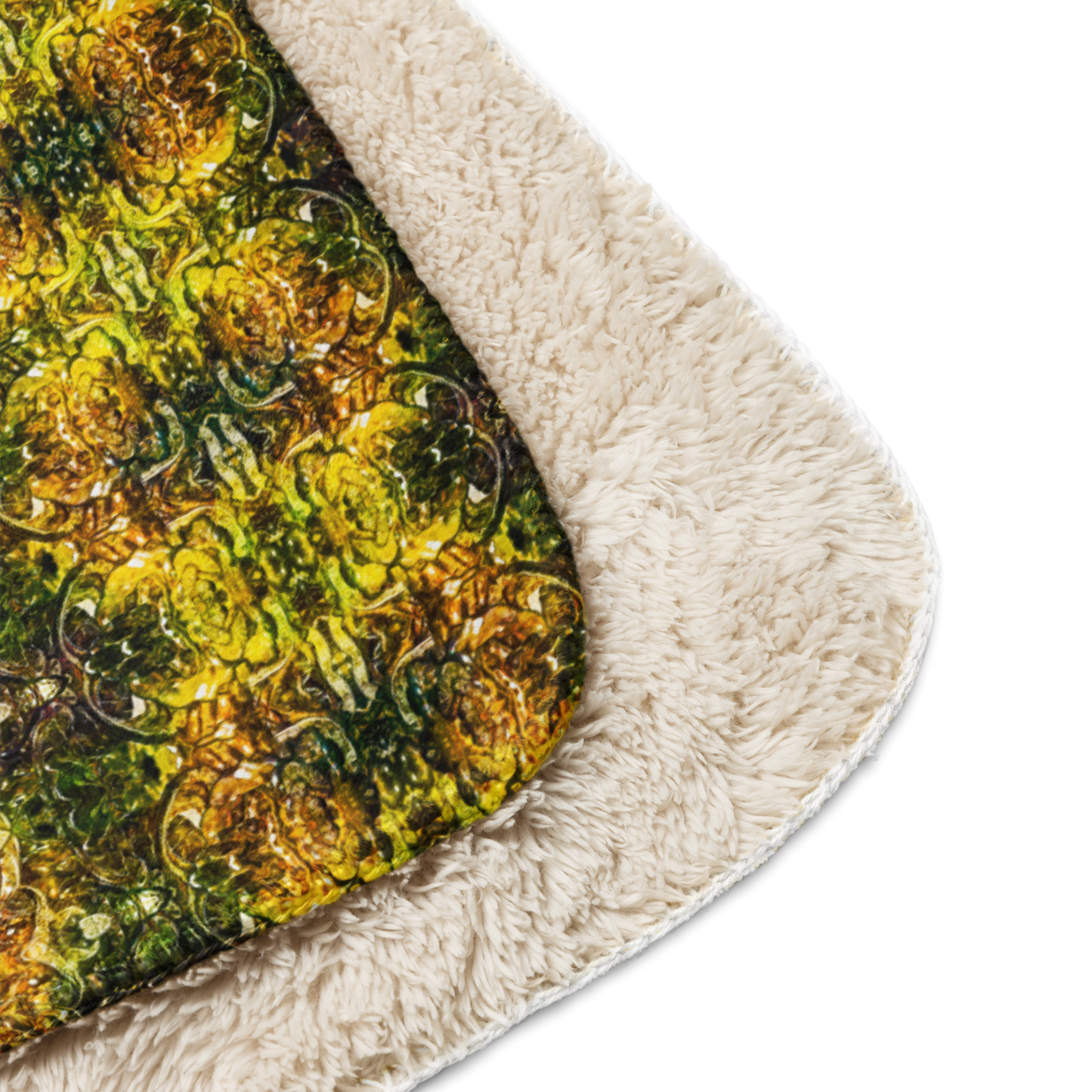 The Cream Sherpa Fleece Blanket draws inspiration from the Green Worth philosophy, celebrating the harmony of art and sustainability. Its design pays homage to the interplay of ancient textile traditions and modern eco-conscious innovations. -