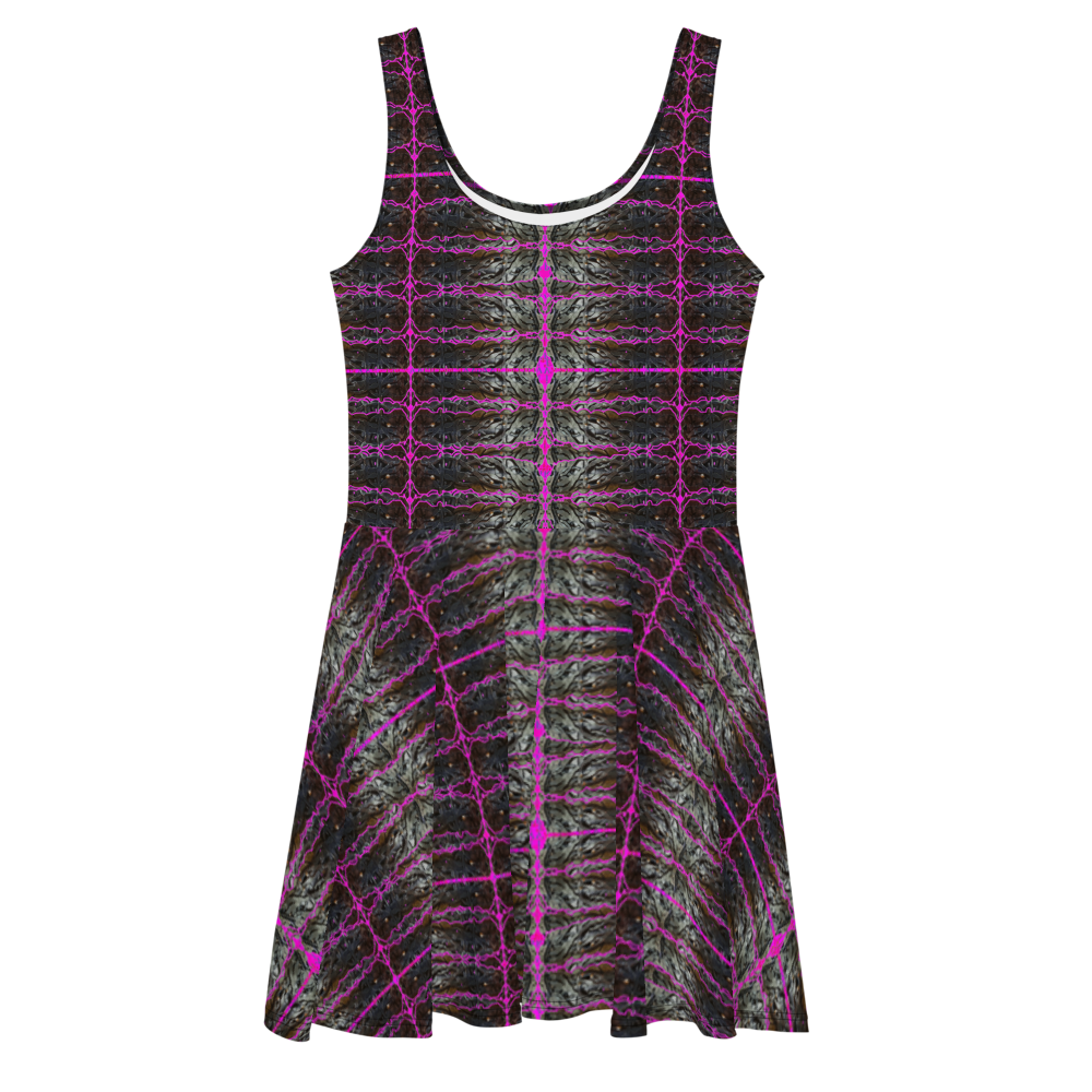 Crafted from soft, elastic fabric that feels like a second skin, this sleeveless skater dress combines comfort with visual impact. Featuring custom, all-over prints inspired by the original artwork of RJSTH, each dress is a wearable masterpiece. The flared, mid-thigh skirt creates an enchanting twirl, while the elastic waistline ensures a perfect fit for every body type.