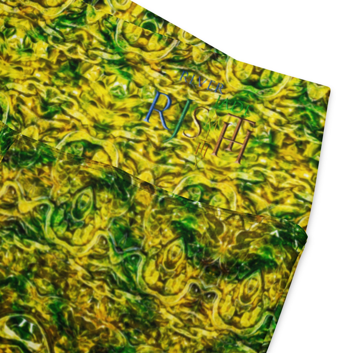Product History Flare leggings carry a rich history, from their nautical beginnings to their rise in counterculture fashion. River Jade Smithy’s version honors this legacy while pushing the boundaries of sustainability and artistry. Infused with original art by River Jade Smith Travis “Doby” Huffaker, these leggings are a modern homage to the cyclical nature of fashion, combining ancient techniques with future-forward design.