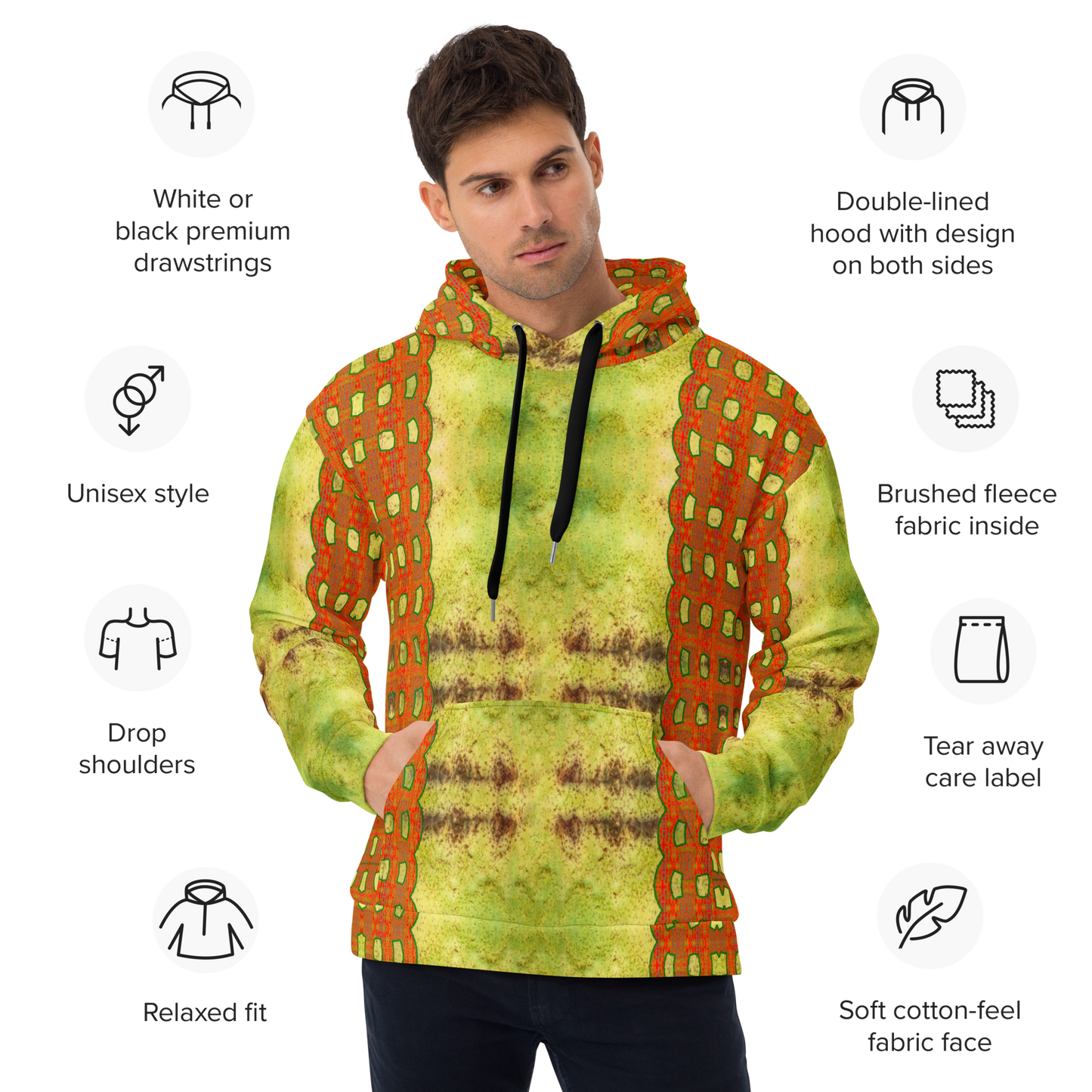 • Ethical Production: Meticulously printed, cut, and hand-sewn by skilled artisans at Printful, this hoodie epitomizes our commitment to craftsmanship and ethical production.