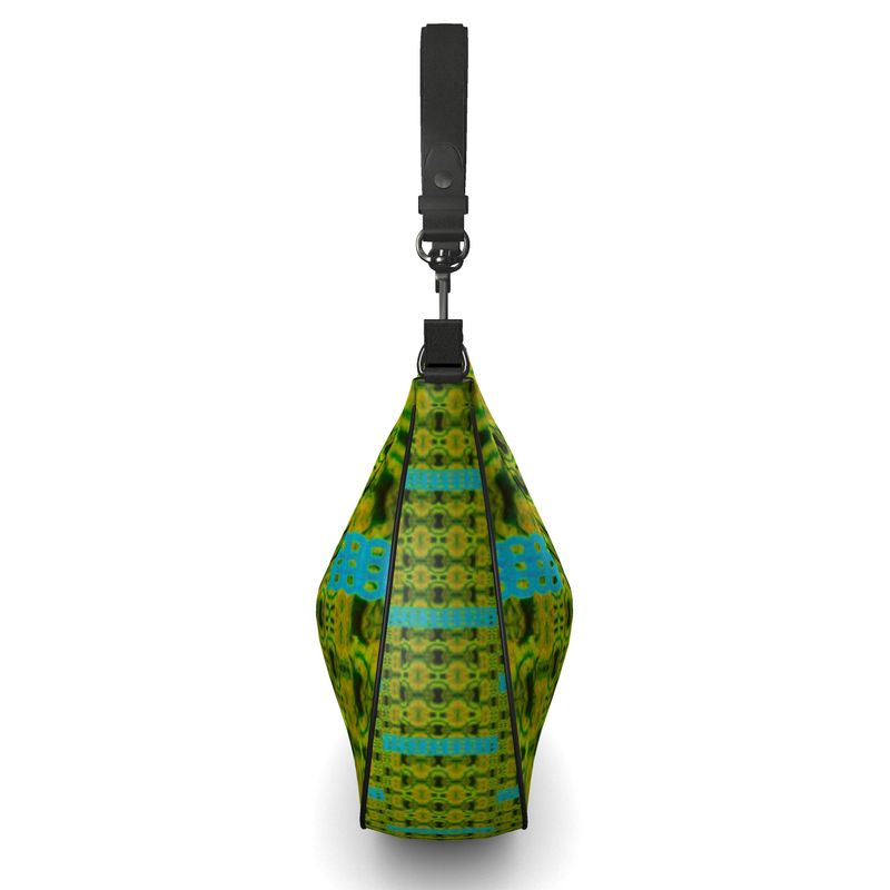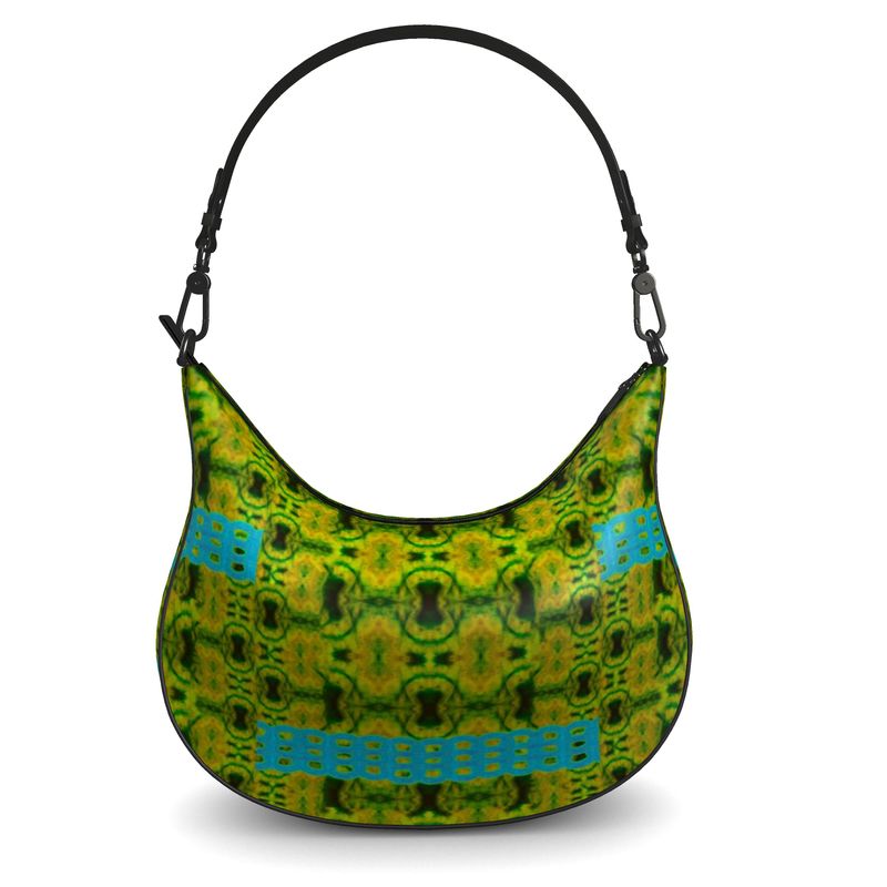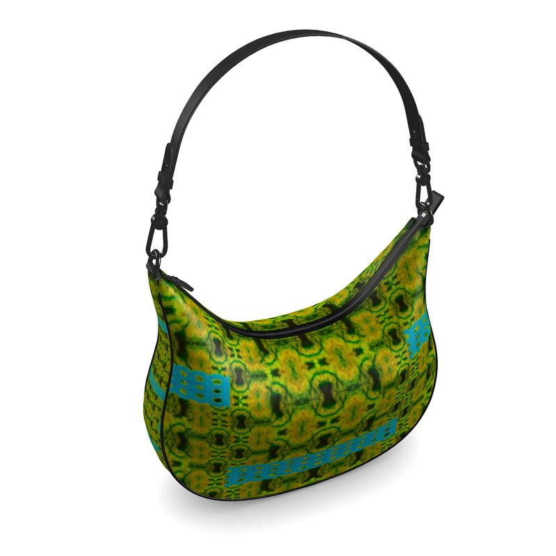 Each Leather Curve Hobo Bag is available in a range of bespoke prints, each featuring original art by River Jade Smith Travis “Doby” Huffaker RJSTH. Designed using Ancient Now techniques, these prints celebrate a fusion of history, myth, and avant-garde expression.