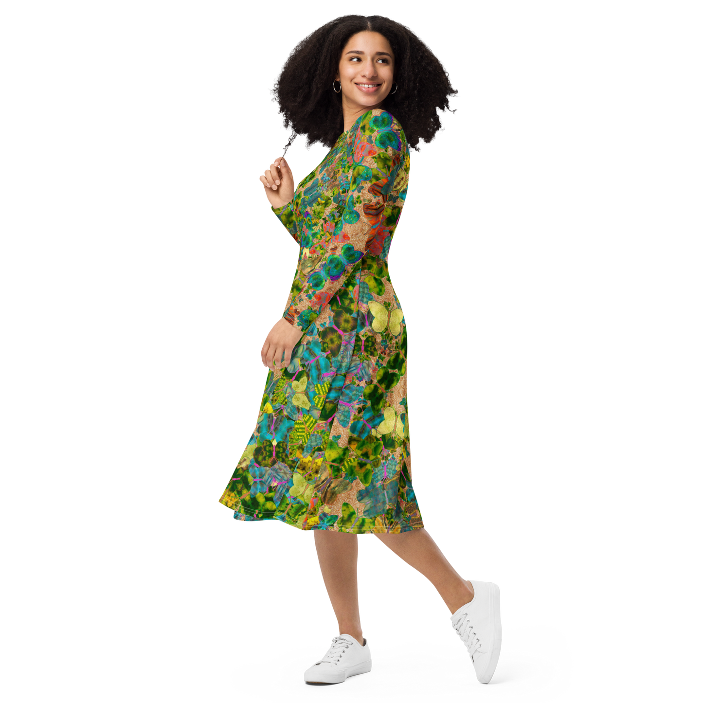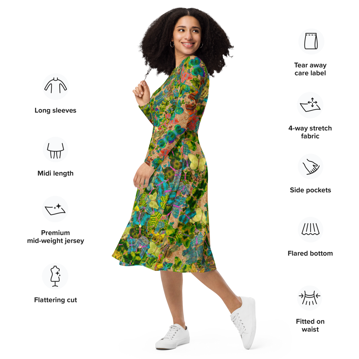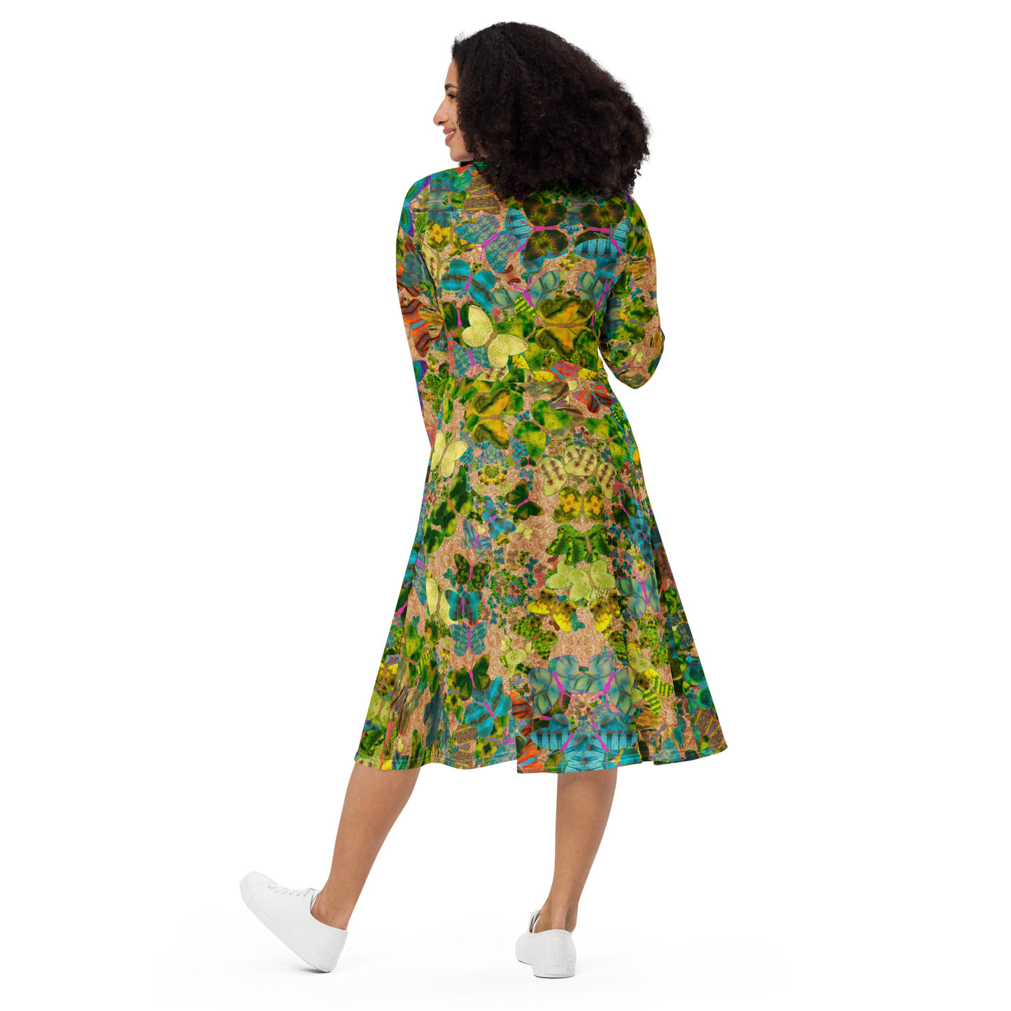 Long Sleeve Midi Dress (Her/Muliebris)(Butterfly Glade Ouroboros Smith Fabric) RJSTHS2022 RJS
