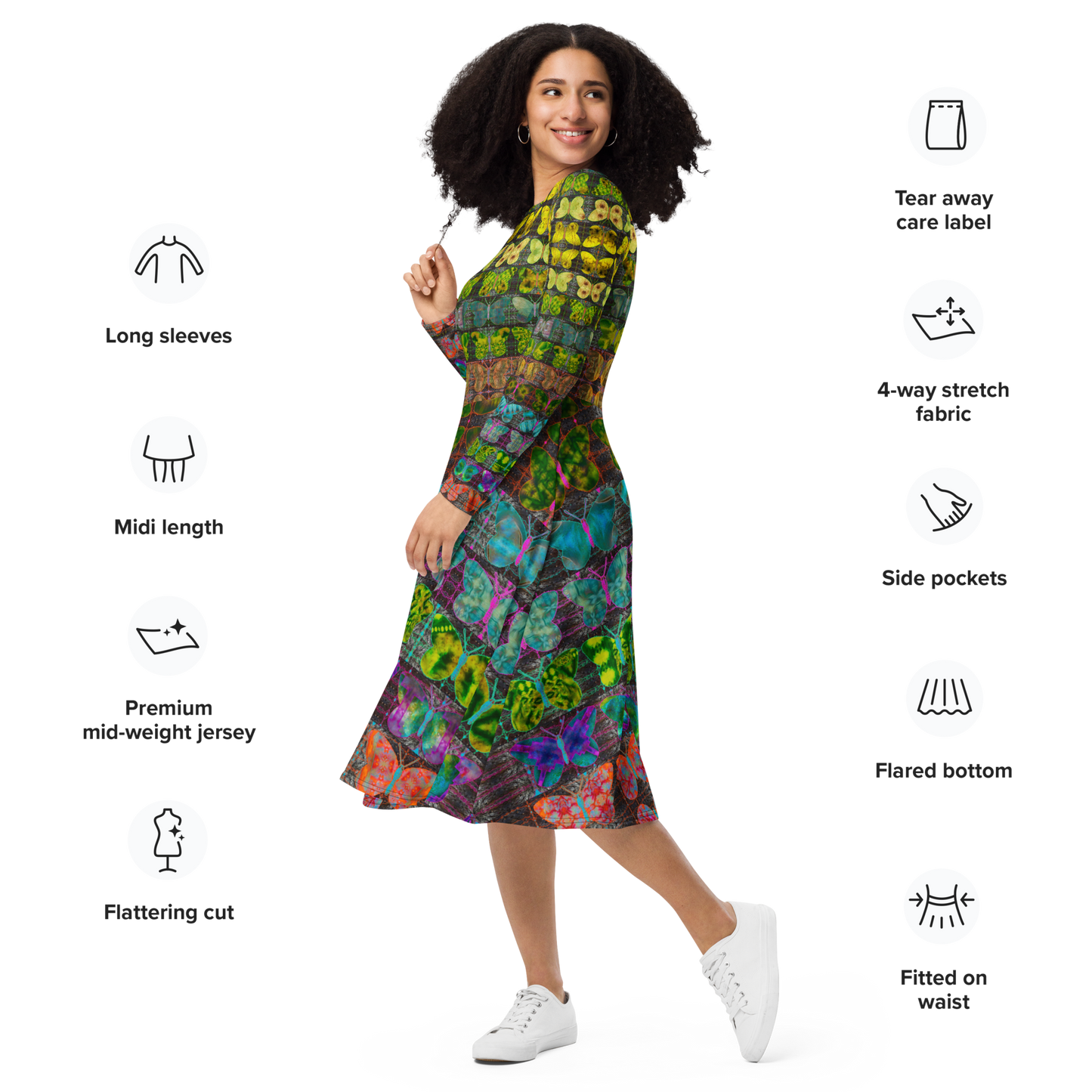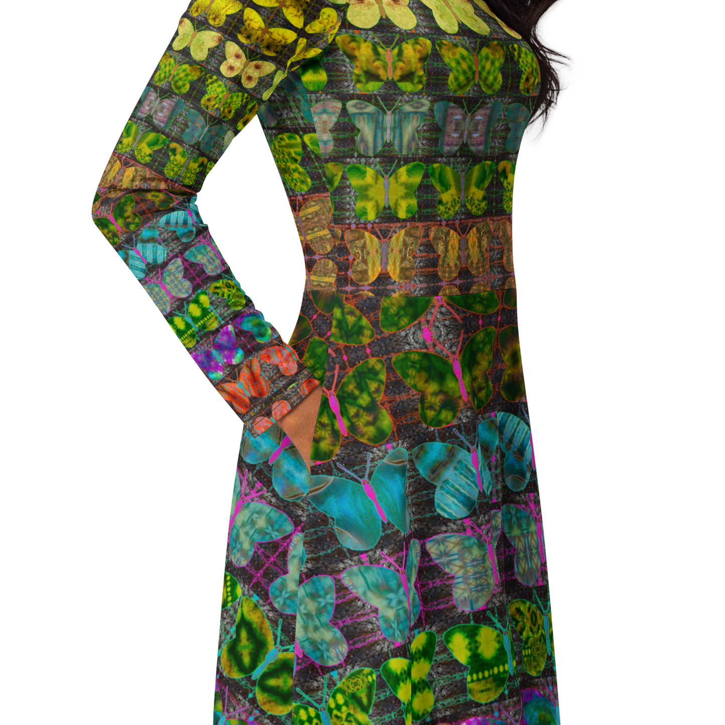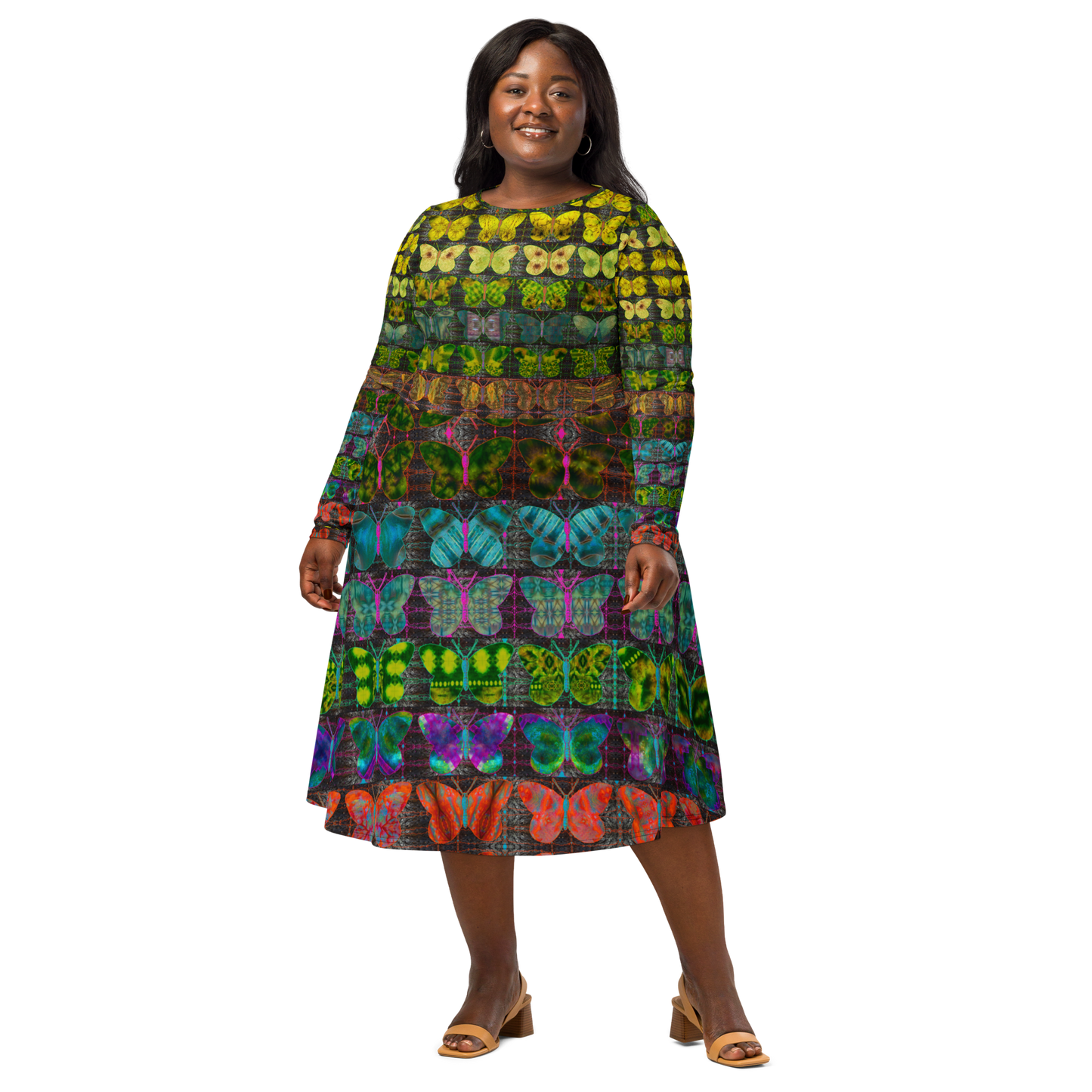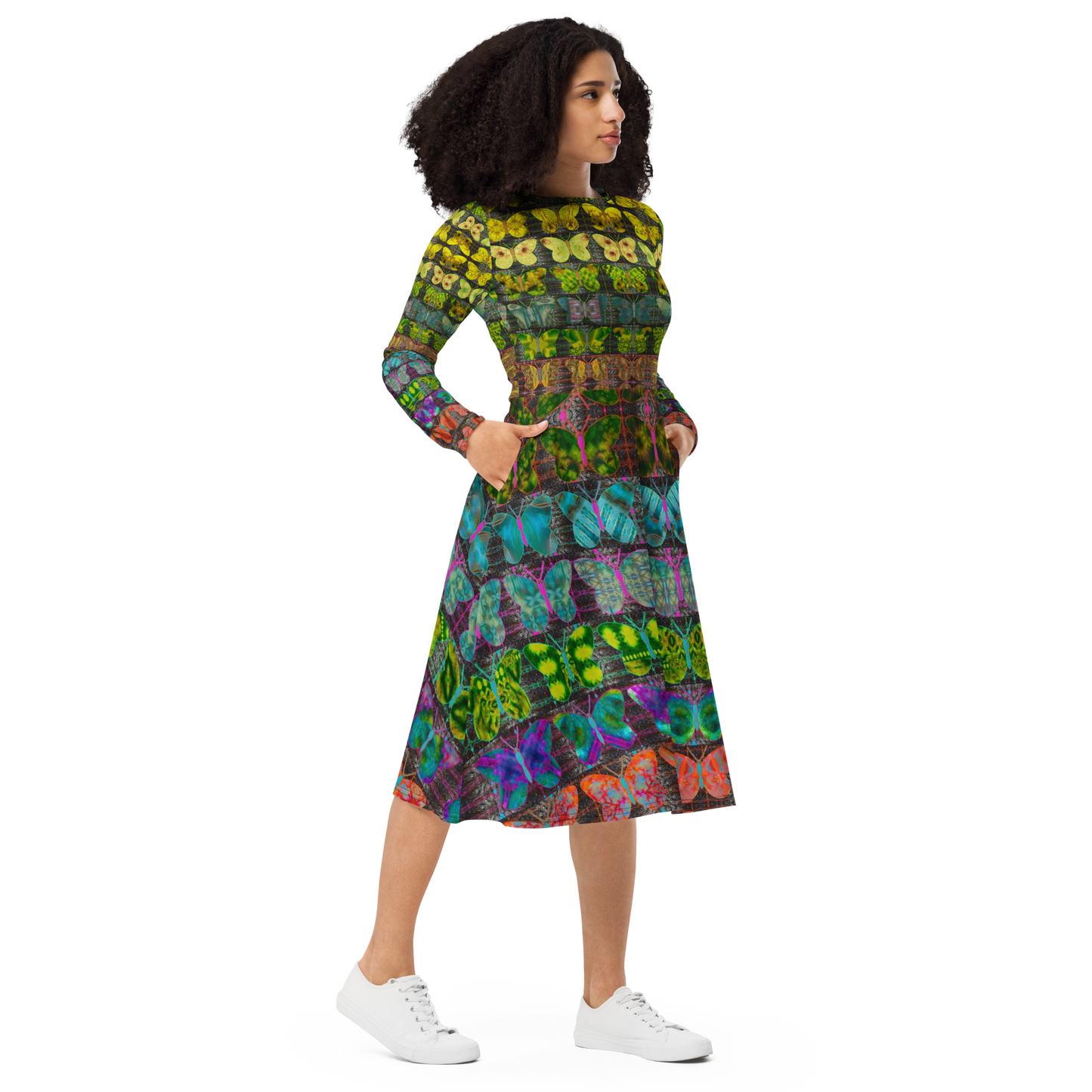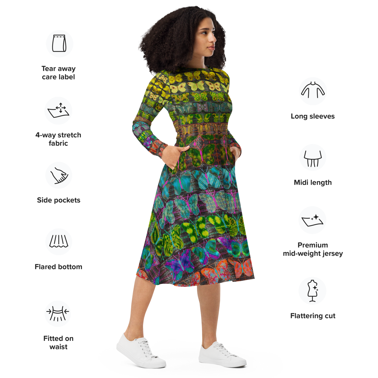 Long Sleeve Midi Dress (Her/Muliebris)(Butterfly Glade Tree Link Pride Stripes) RJSTHS2022 RJS