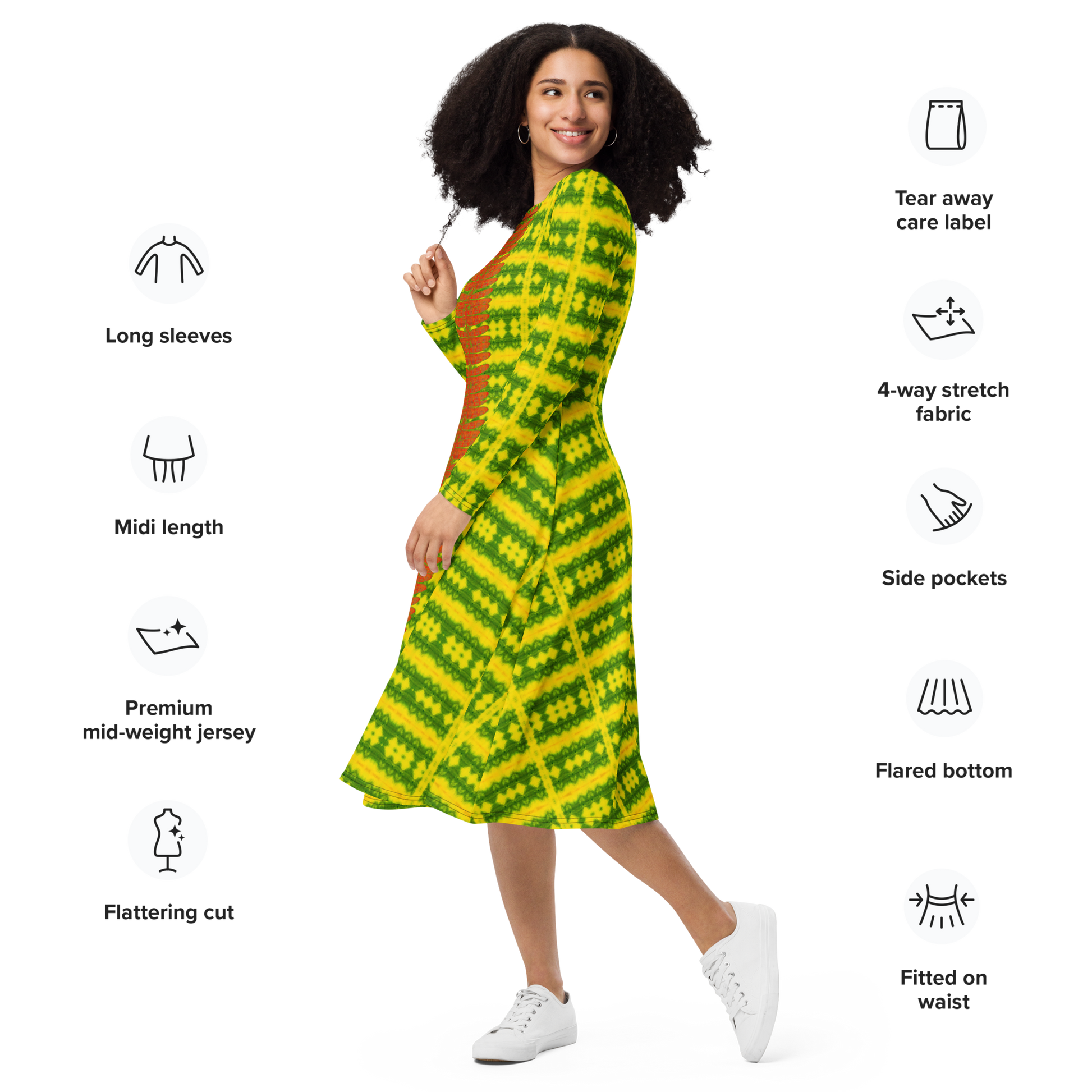 Long Sleeve Midi Dress Product Information and Customer Reviews at the Manufacturer Printful.