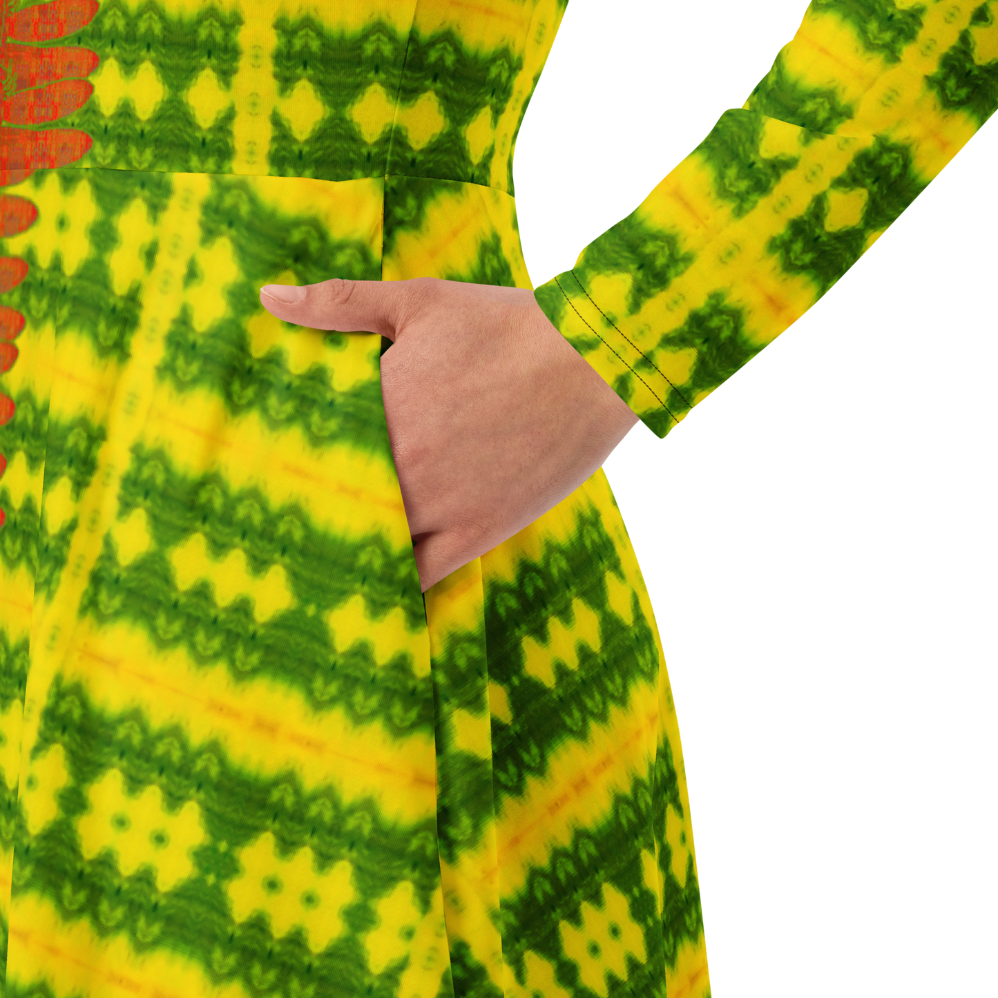 Step into grace and mythic artistry with the Long Sleeve Midi Dress (Her/Muliebris). Designed with sustainability, beauty, and artisan quality, this piece brings together a flattering silhouette, functional pockets, and the brilliance of original art by River Jade Smith Travis Huffaker. A garment of comfort and style, made-to-order to honor both you and the Earth.