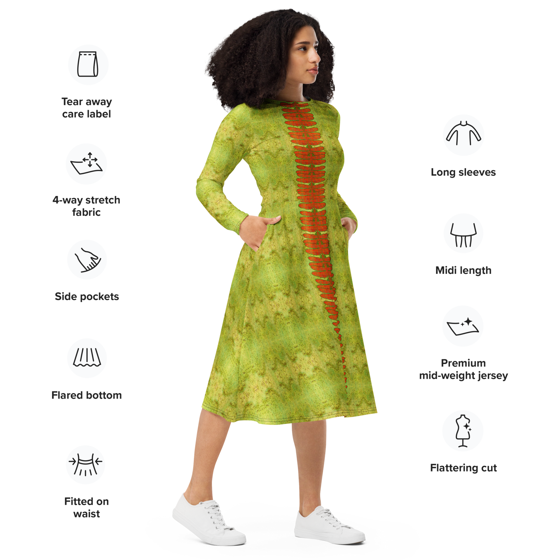 Long Sleeve Midi Dress Product Information and Customer Reviews at the Manufacturer Printful.