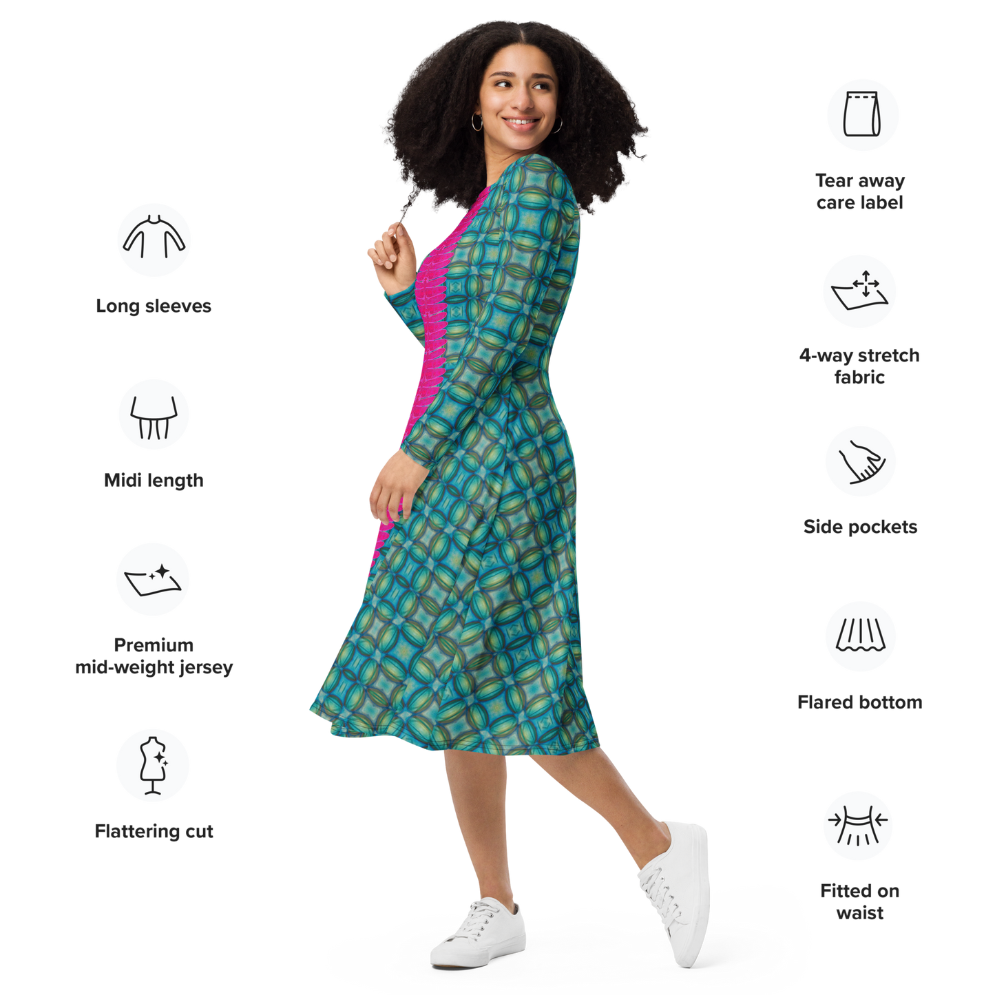 Long Sleeve Midi Dress Product Information and Customer Reviews at the Manufacturer Printful.