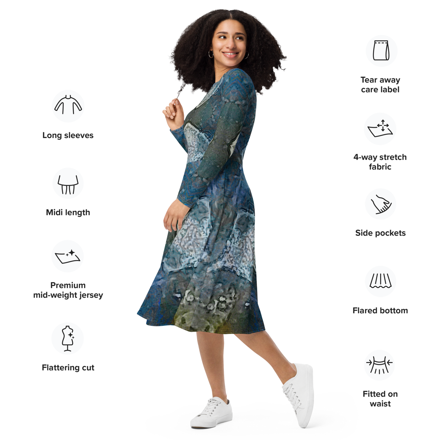 Long Sleeve Midi Dress Product Information and Customer Reviews at the Manufacturer Printful.