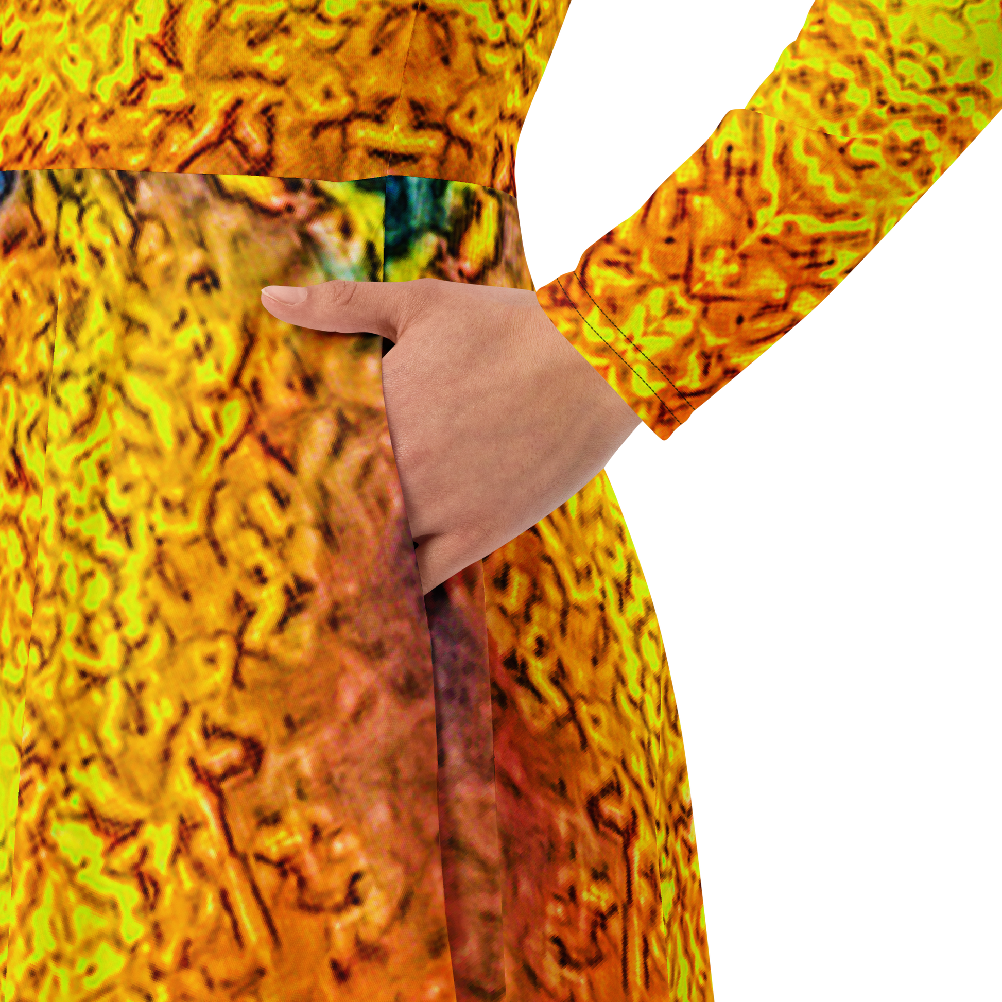 For River Jade Smith Travis “Doby” Huffaker, this Long Sleeve Midi Dress is more than a garment—it is one of his favorite dance-as-celestial-engineering performance outfits. By ordering the largest size, stepping in through the neckline, pulling the hem just to the rib cage, and tying the long sleeves around the waist—leaving chest and arms bare—the dress becomes a flowing, radiant costume. In movement and under shifting lights, the fabric dazzles, offering a dance of Magi Worth, where art, being, and light interlace with Wealth As Time.