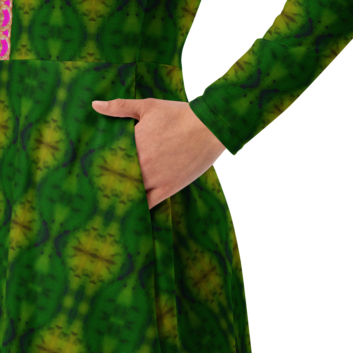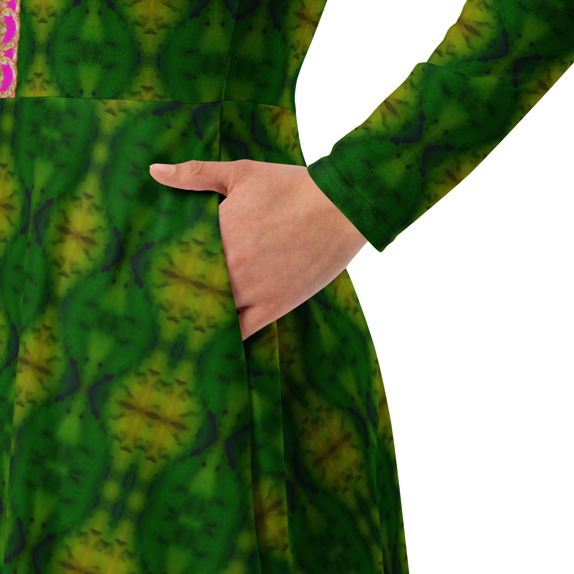 Step into grace and mythic artistry with the Long Sleeve Midi Dress (Her/Muliebris). Designed with sustainability, beauty, and artisan quality, this piece brings together a flattering silhouette, functional pockets, and the brilliance of original art by River Jade Smith Travis Huffaker. A garment of comfort and style, made-to-order to honor both you and the Earth.