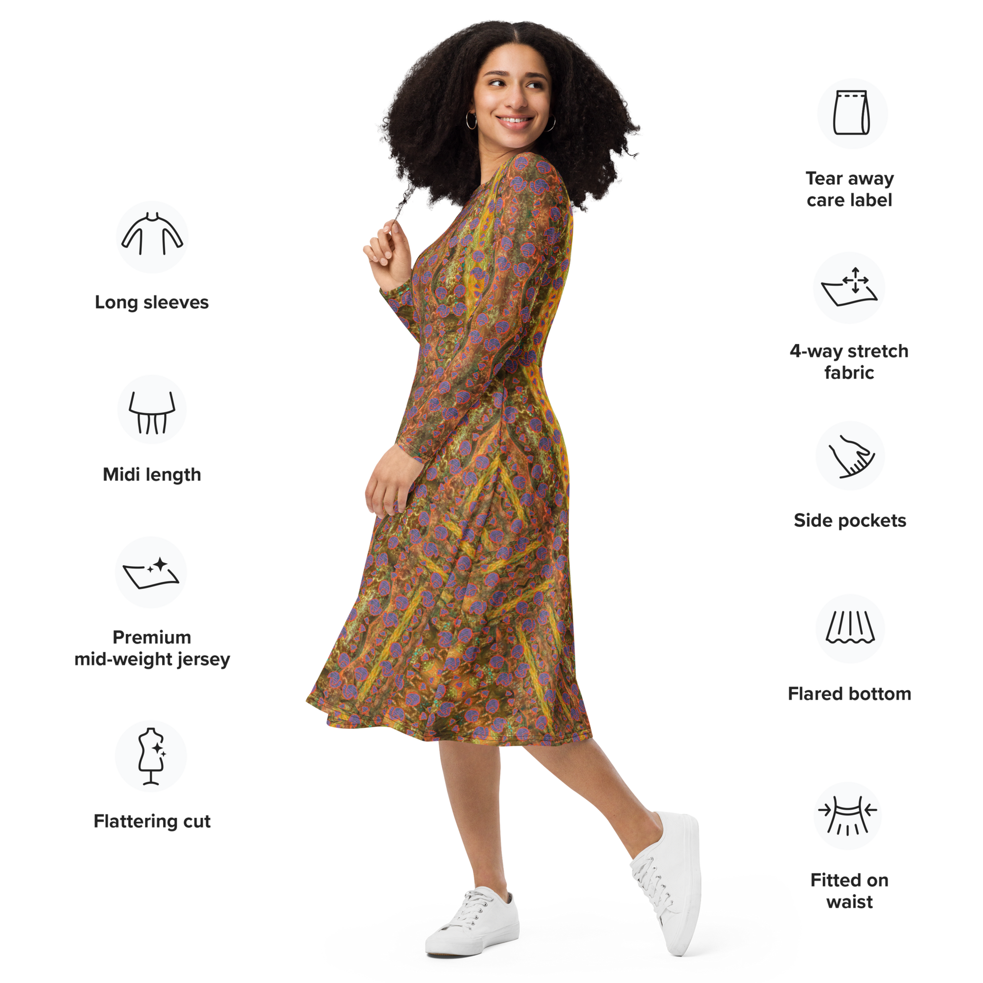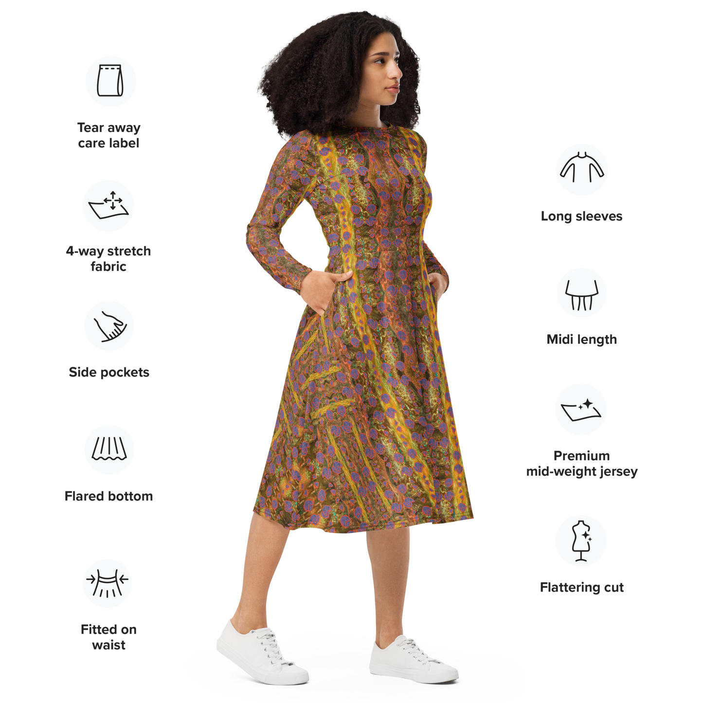 Long Sleeve Midi Dress (Her/Muliebris)(Pollen Dapple) RJSTH@Fabric#6 RJSTHS2025 RJS