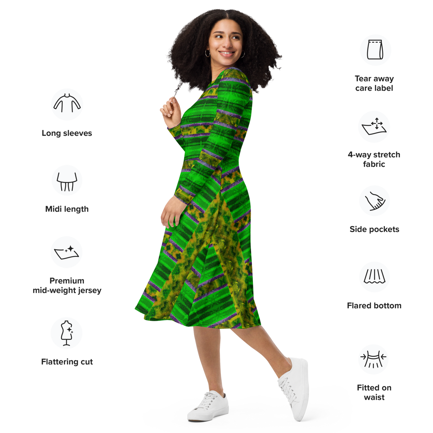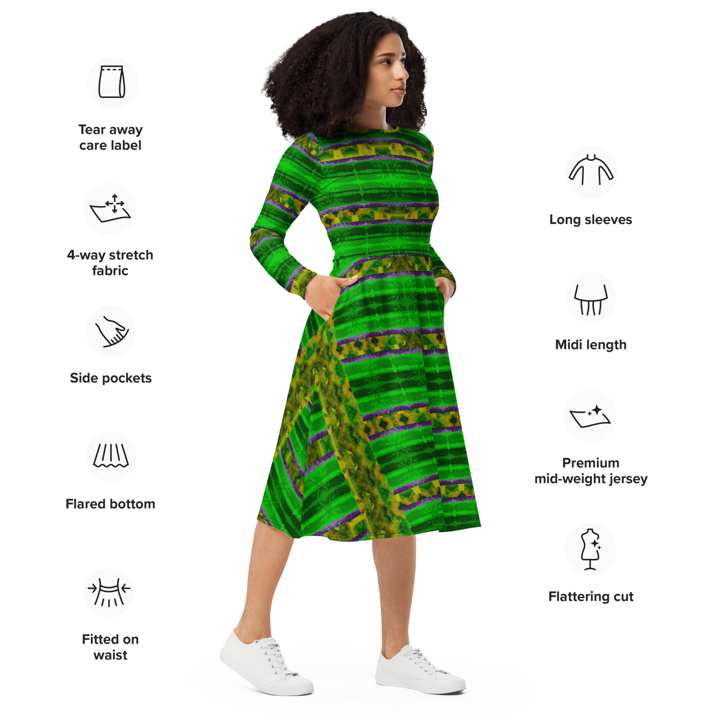 Long Sleeve Midi Dress Product Information and Customer Reviews at the Manufacturer Printful.