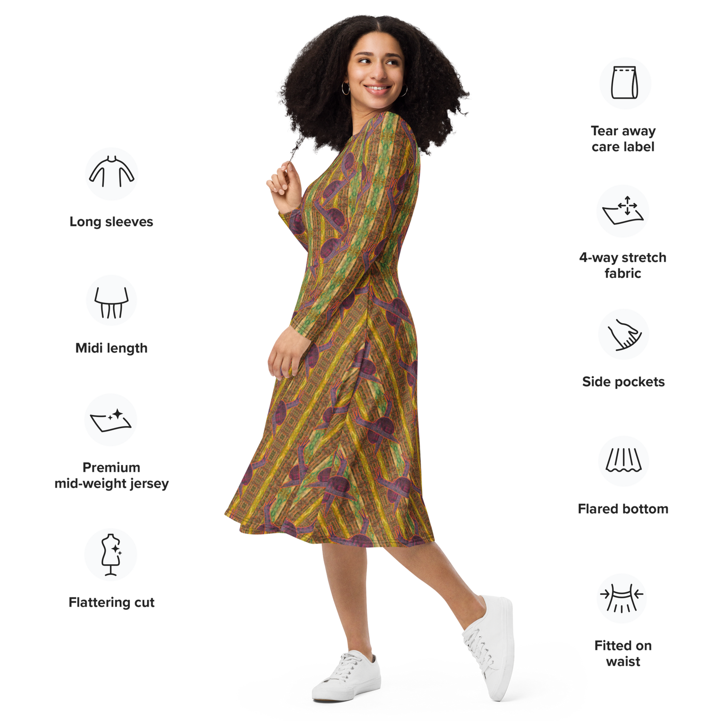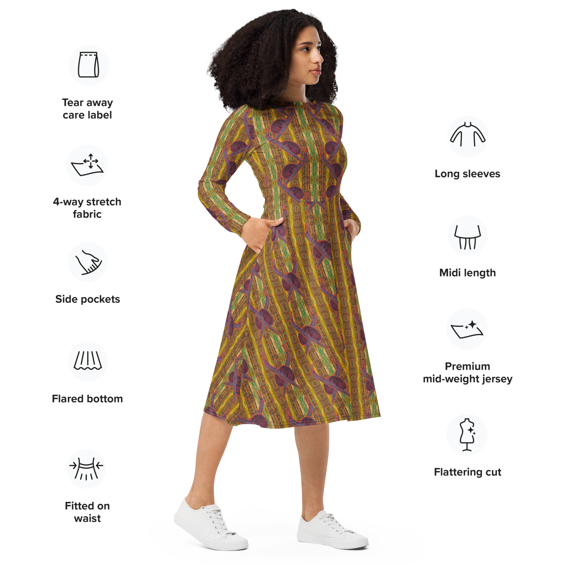 Long Sleeve Midi Dress Product Information and Customer Reviews at the Manufacturer Printful.