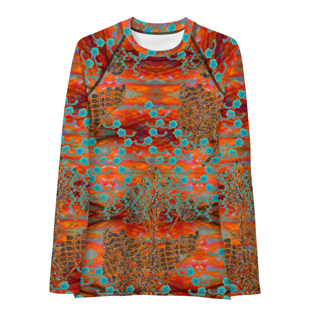 Maximize your athletic performance and protect your skin with our Rash Guard! With a slim fit, flat seams, and long body, this versatile long-sleeve top not only looks great with its bold print, but it also shields you from the elements. Let your creativity shine with original designs by artists River Jade Smith and Travis Huffaker.