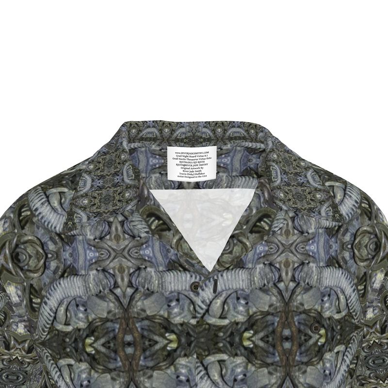 Experience the fusion of vintage charm and artisan depth with the Revere Shirt (His/Virilis), a printed camp collar shirt brought to life by River Jade Smithy (RJSTH). Designed for comfort, drape, and timeless sophistication, this men’s revere shirt embodies sustainable artistry and Ancient Future myth-building, offering eco-conscious luxury for both leisure and statement style. At River Jade Smithy, we create sustainable, artisan-crafted, made-on-demand pieces that elevate your ethical wardrobe while celebrating Grail Smith creativity.