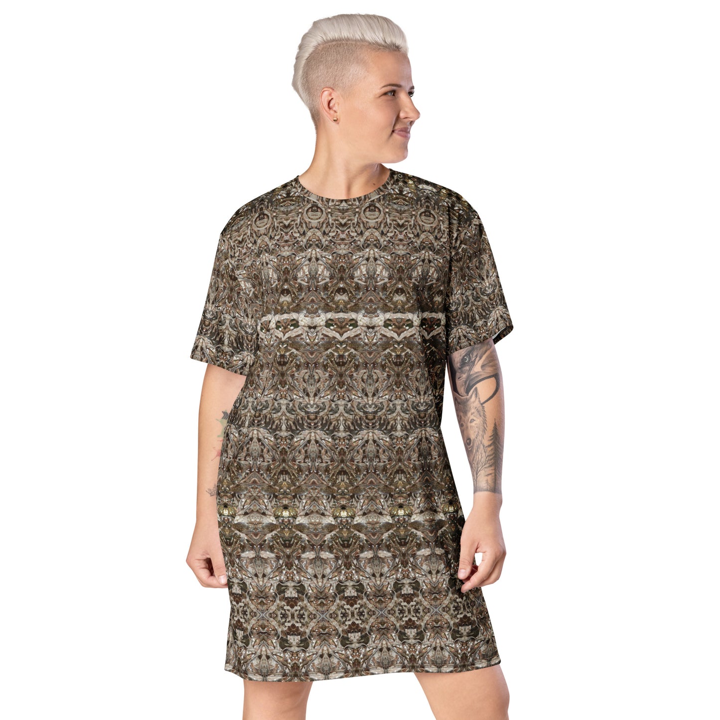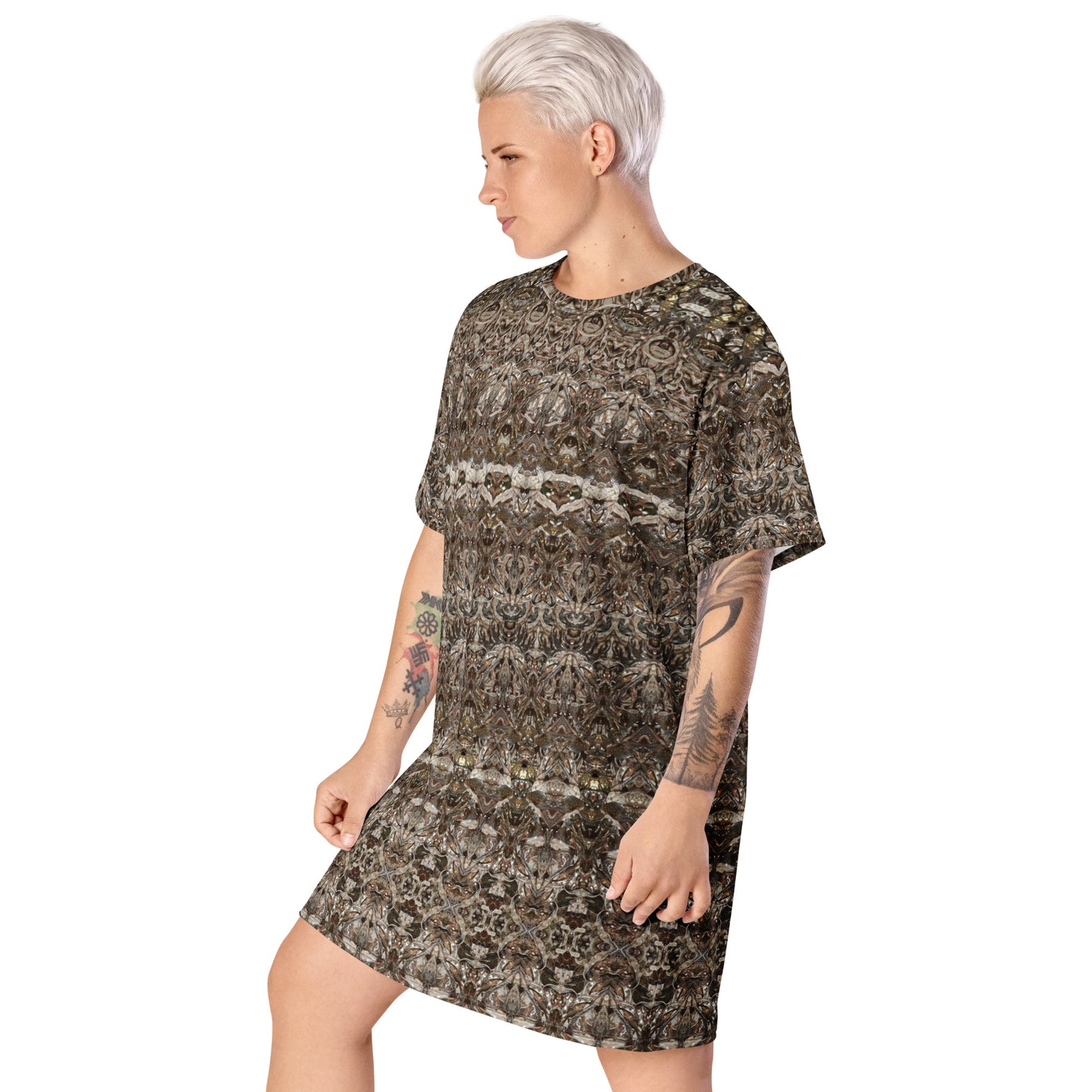 Made from eco-friendly, OEKO-TEX 100 standard-certified fabric, the All-Over Print T-Shirt Tunic feels like a second skin while making a bold statement. Its oversized fit and dropped shoulders ensure comfort and freedom of movement, while its handcrafted designs bring elegance and individuality to every look.