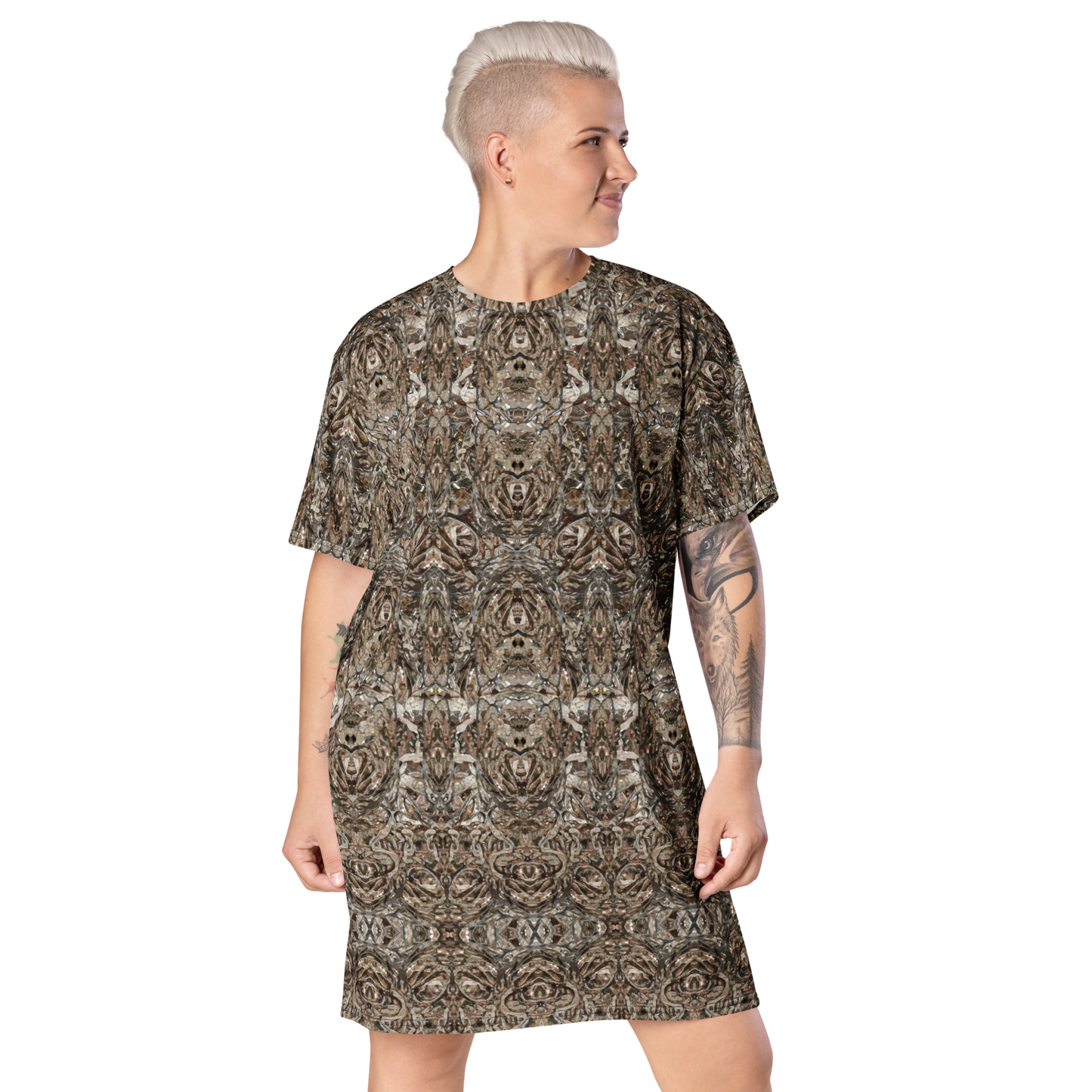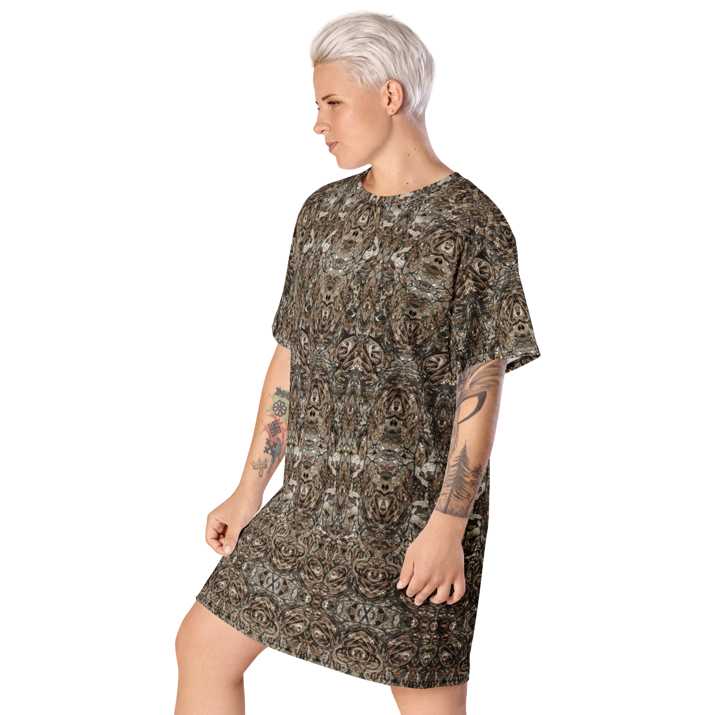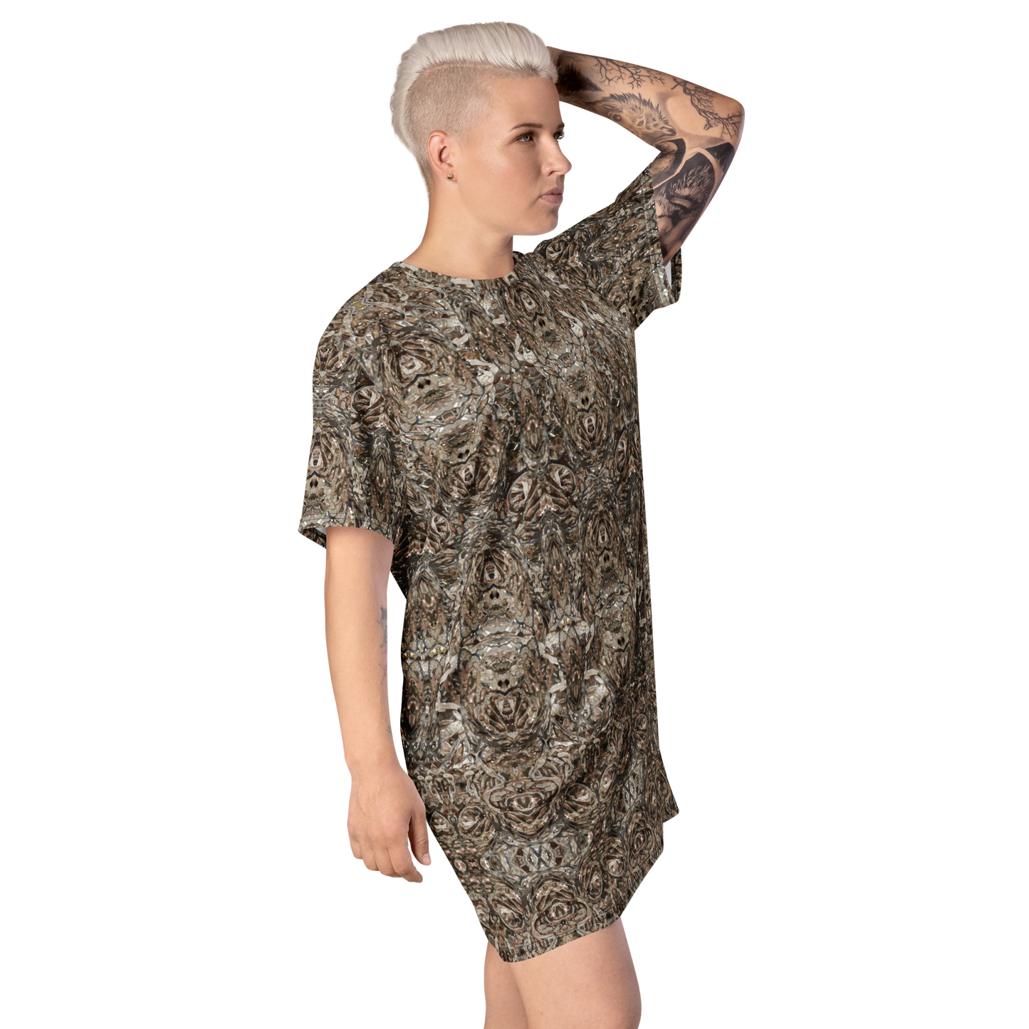Made from eco-friendly, OEKO-TEX 100 standard-certified fabric, the All-Over Print T-Shirt Tunic feels like a second skin while making a bold statement. Its oversized fit and dropped shoulders ensure comfort and freedom of movement, while its handcrafted designs bring elegance and individuality to every look.