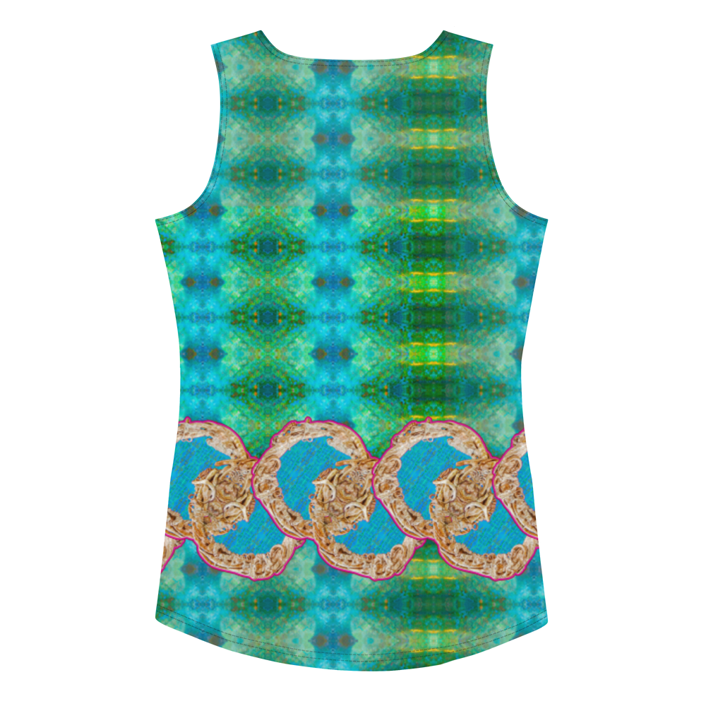 Each tank top showcases original art from River Jade Smithy’s collections, such as Grail Hearth Core Copper Fabric and Ouroboros Smith Butterfly at RJSTH@Fabrics# 1-12, blending luminous designs with high-performance fabrics.