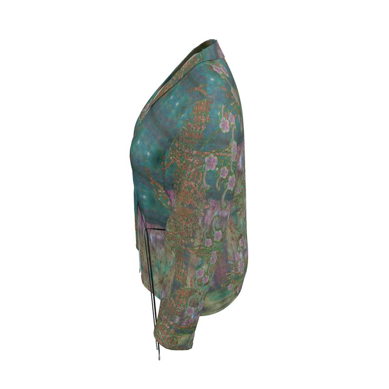 Introduction: Embrace the essence of elegance and eco-consciousness with the Wrap Blazer (Her/Muliebris), a masterpiece of art from the creative vision of River Jade Smith Travis Huffaker. This garment transcends the ordinary, blending the timeless charm of a blazer with the innovative spirit of a wrap design. Inspired by the Green Worth ethos, it reflects a deep commitment to sustainability and the art of fashion.