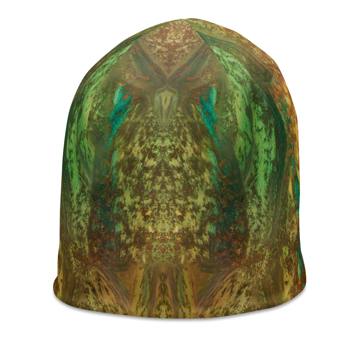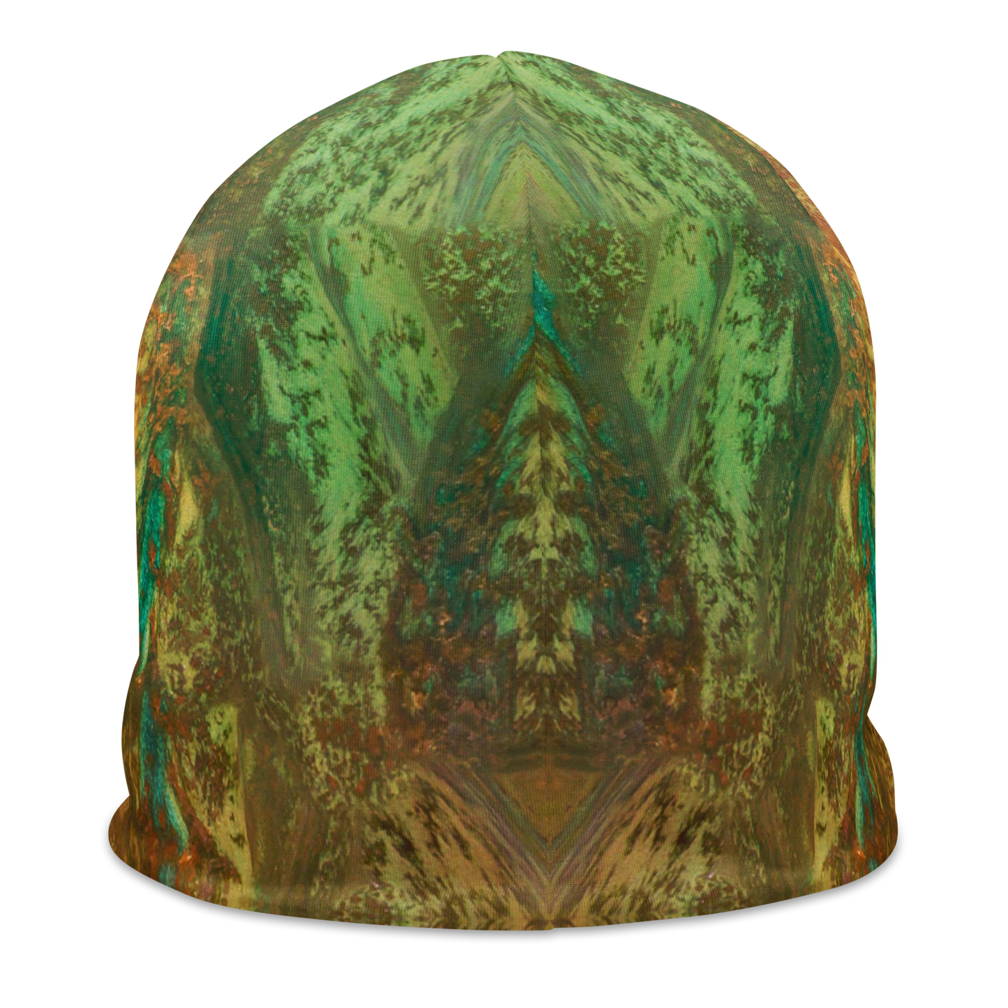 Inspired by the Ancient Now art techniques of the Grail Smith and the Green Worth ethos, this beanie is a modern take on traditional craftsmanship. Each piece is printed, cut, and hand-sewn by in-house artisans at Printful, ensuring meticulous attention to detail.
