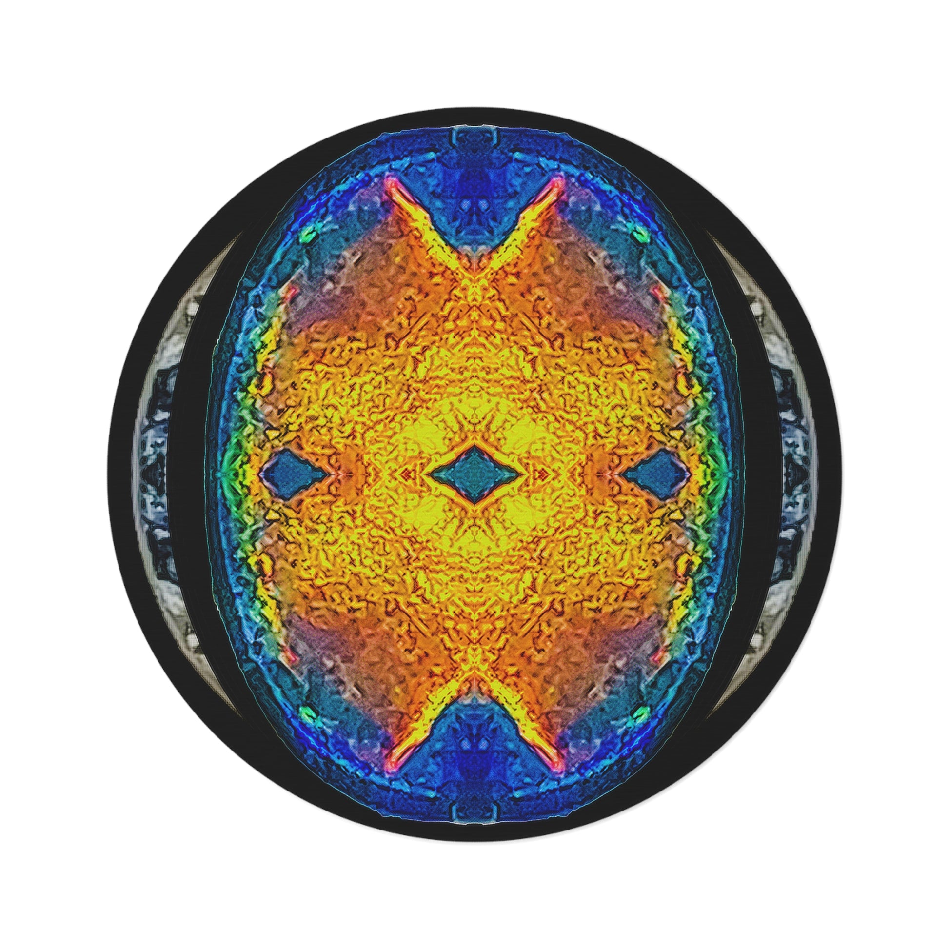 Cultural or Artistic Influences: The circular rug recalls both Eastern mandalas and Western tapestries. Within the Ancient Future mythos of the Grail Smith, it becomes a meeting place for art and ethics—a radiant wheel of meaning beneath one’s feet or hung like a solar disc upon the wall.