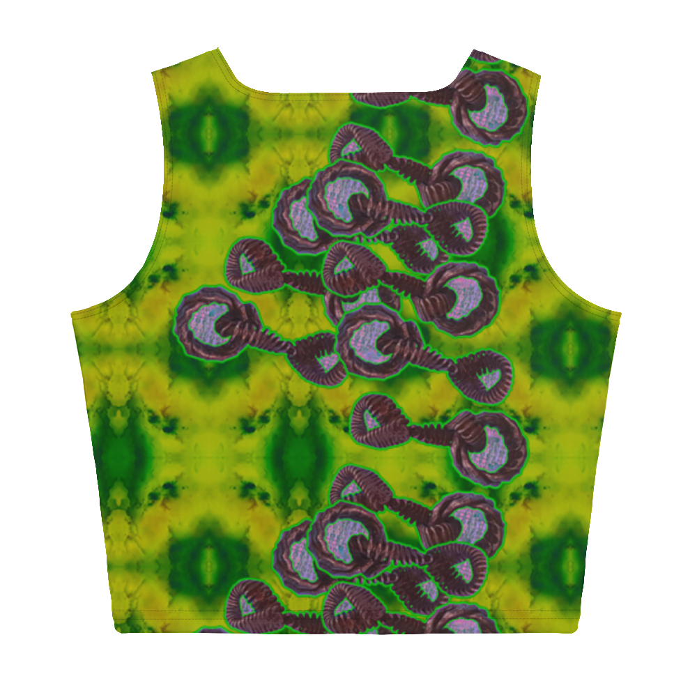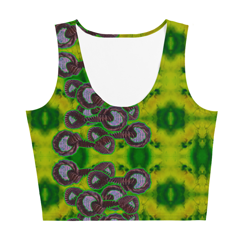 To preserve both the environment and the beauty of your Her/Muliebris Crop Top, hand wash in cold water and drip dry. This helps maintain its vibrant artwork and fabric integrity. Follow specific care instructions provided by the manufacturer for the best results.