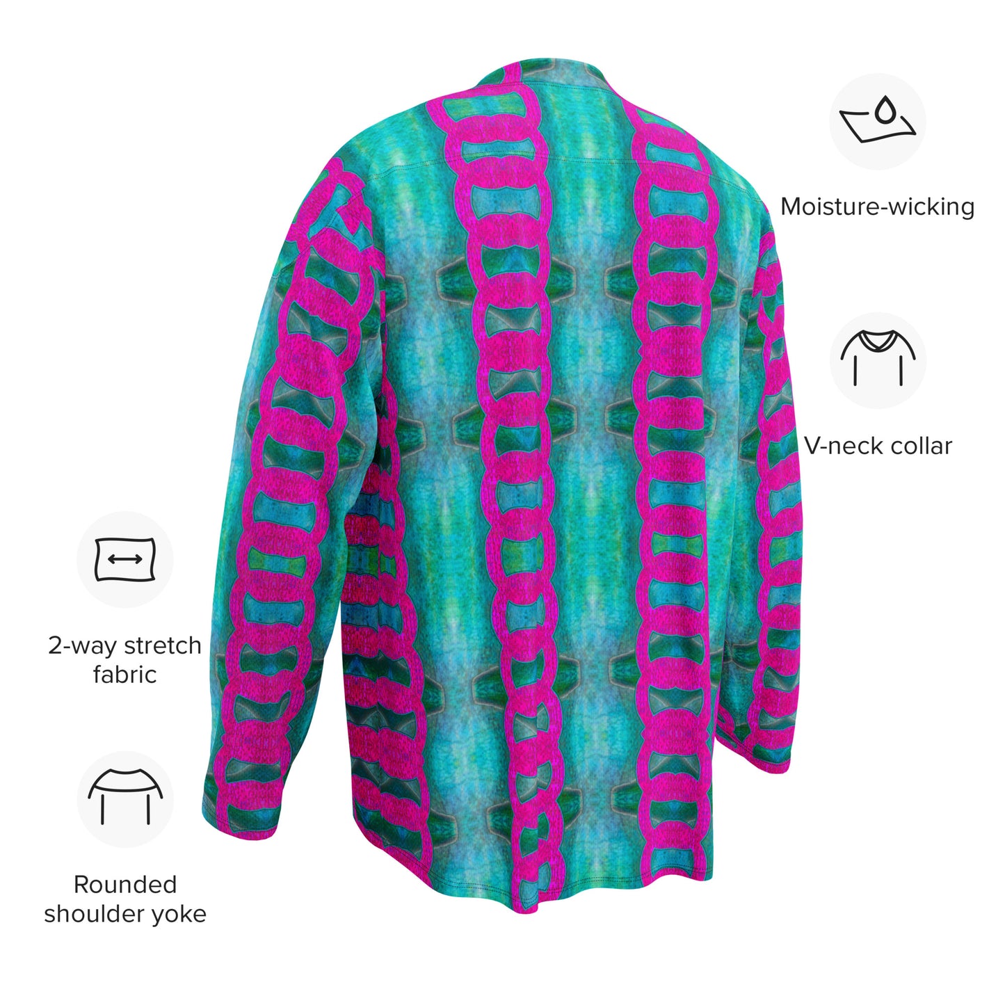 Hockey jerseys trace their origins to the late 19th century, crafted from heavy wool to keep players warm in the frigid rinks of early ice hockey. Over time, materials evolved for better performance, breathability, and durability. River Jade Smithy’s take on this classic sportswear reinvents it as a canvas of wearable art, incorporating Ancient Now art techniques of the Grail Smith into every fiber. By integrating sublimation printing, this jersey transcends mere apparel, showcasing luminous patterns that remain vibrant over time—just like the legends that inspire them.