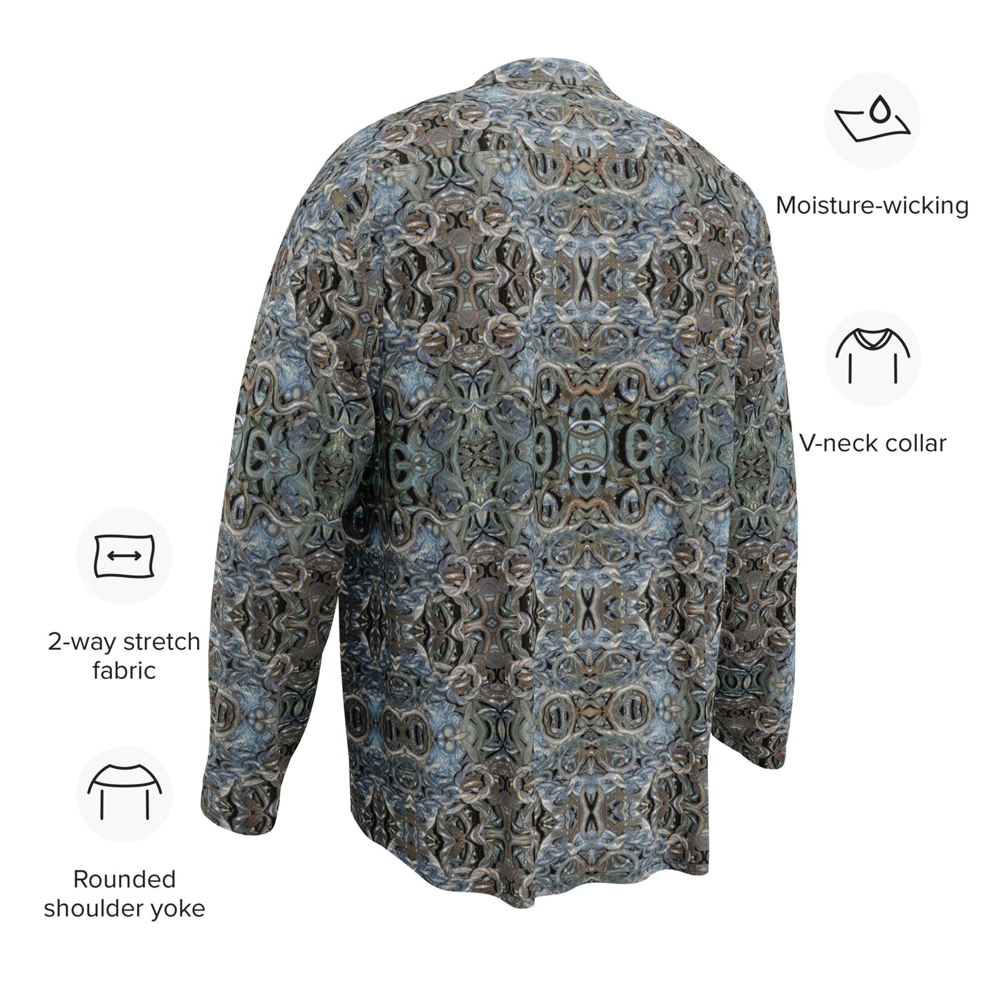 Hockey jerseys trace their origins to the late 19th century, crafted from heavy wool to keep players warm in the frigid rinks of early ice hockey. Over time, materials evolved for better performance, breathability, and durability. River Jade Smithy’s take on this classic sportswear reinvents it as a canvas of wearable art, incorporating Ancient Now art techniques of the Grail Smith into every fiber. By integrating sublimation printing, this jersey transcends mere apparel, showcasing luminous patterns that remain vibrant over time—just like the legends that inspire them.