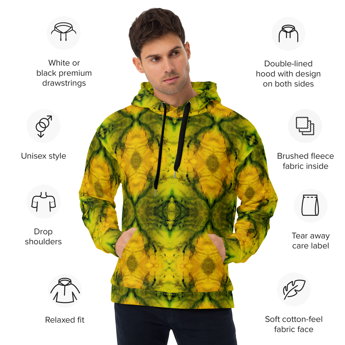 • Ethical Production: Meticulously printed, cut, and hand-sewn by skilled artisans at Printful, this hoodie epitomizes our commitment to craftsmanship and ethical production.