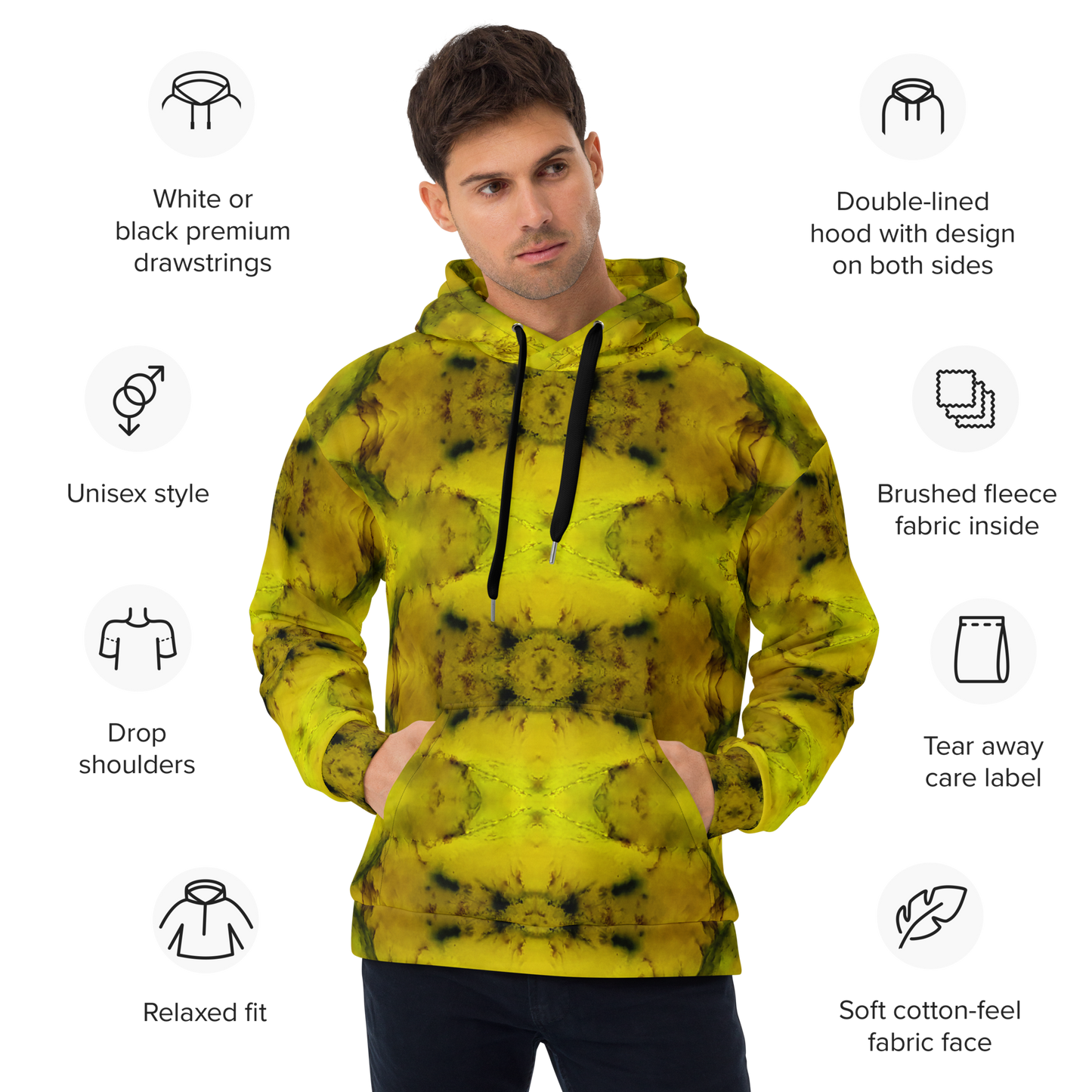 • Ethical Production: Meticulously printed, cut, and hand-sewn by skilled artisans at Printful, this hoodie epitomizes our commitment to craftsmanship and ethical production.