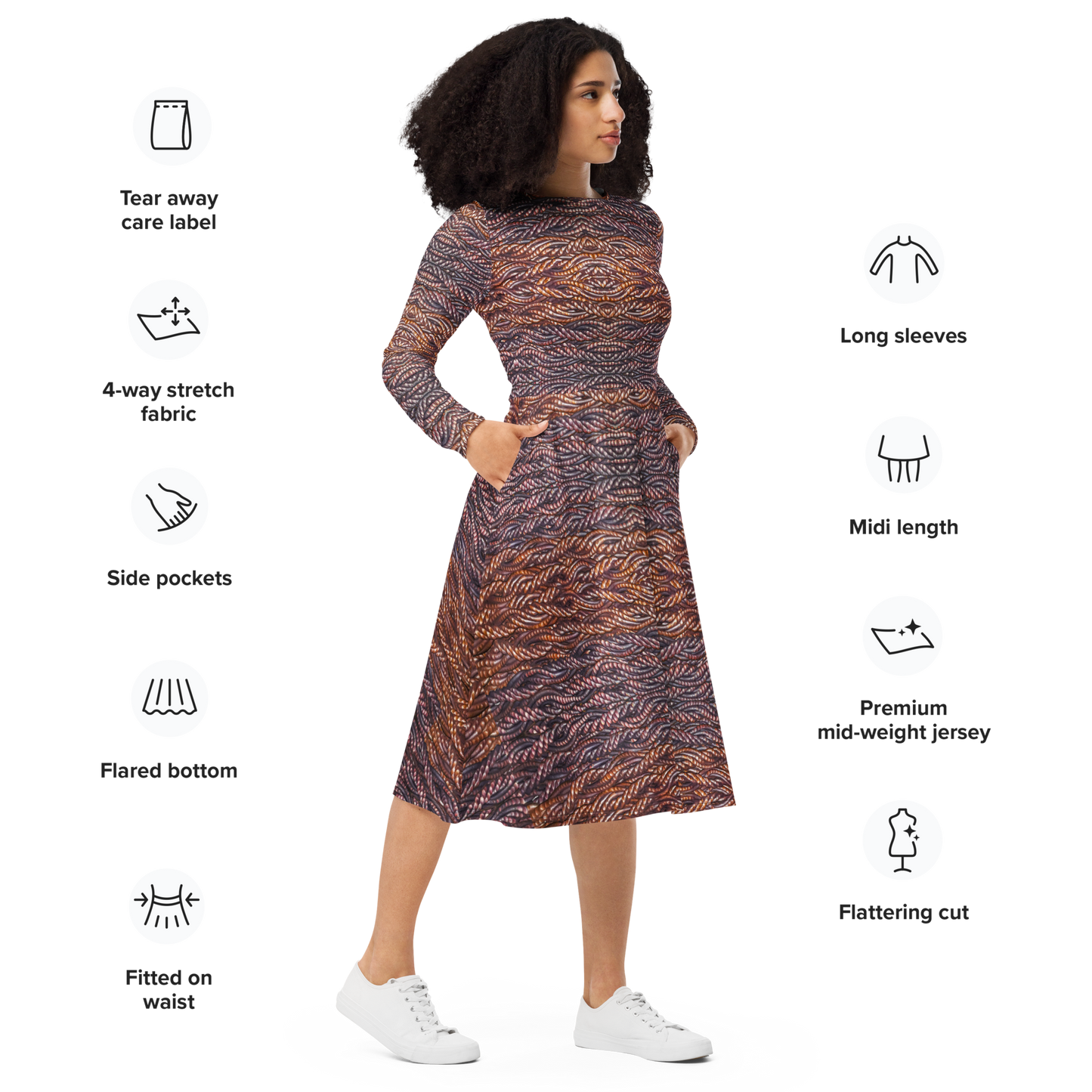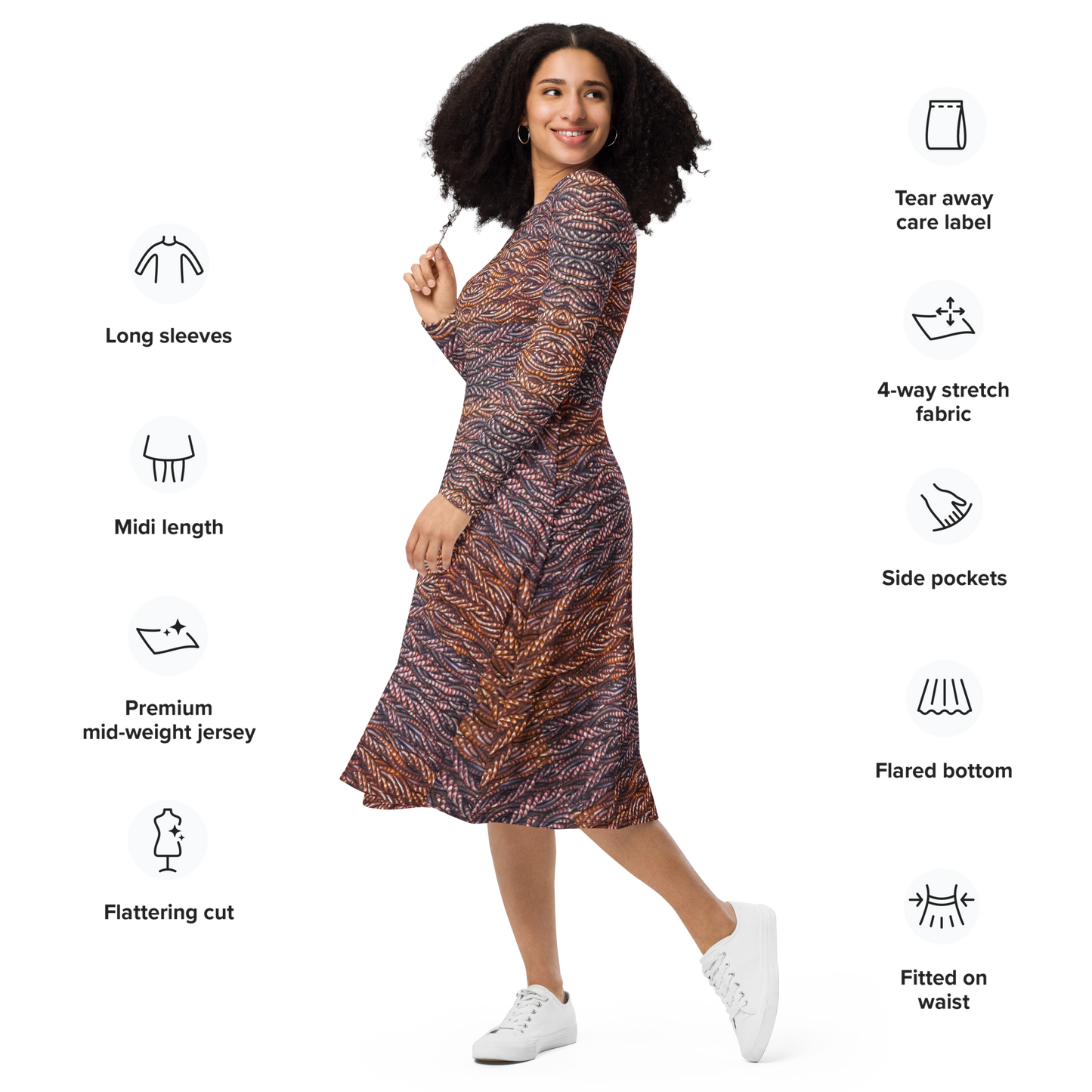 Long Sleeve Midi Dress Product Information and Customer Reviews at the Manufacturer Printful.