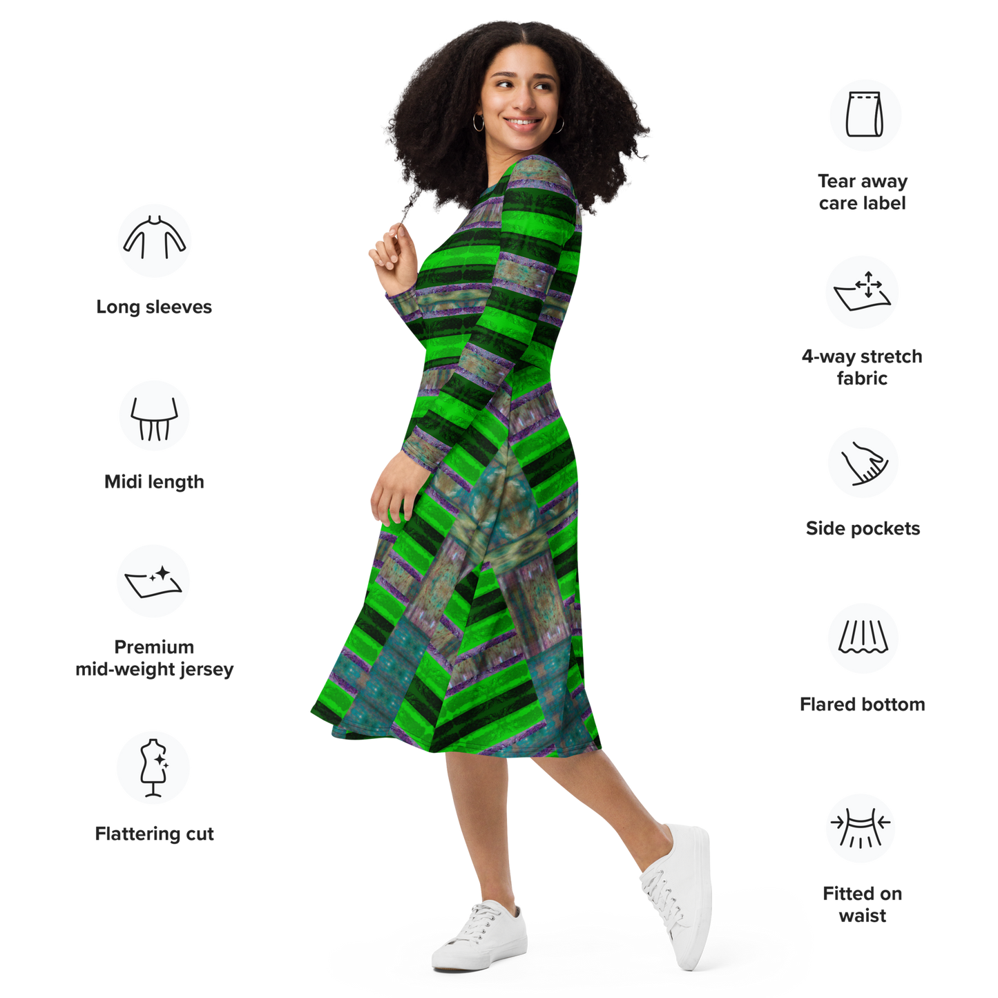 Long Sleeve Midi Dress Product Information and Customer Reviews at the Manufacturer Printful.