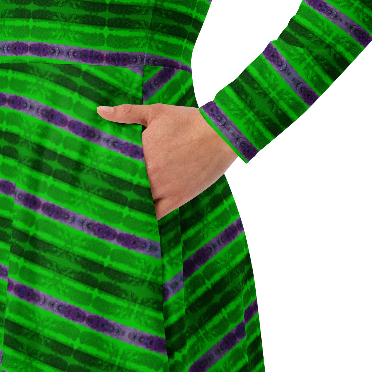 Brand’s Involvement: River Jade Smithy brings the long sleeve midi into the realm of living art. Printed with RJSTH’s original artwork, each piece is a testament to Green Worth Grail Smith philosophy: fashion as moral armor and beauty as resistance. Made-to-order with Printful, this dress curbs overproduction and affirms sustainability.