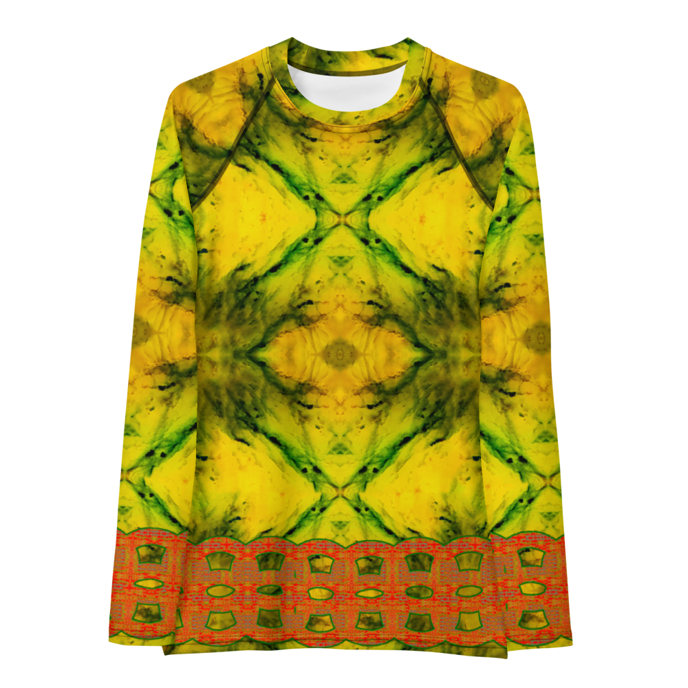 Maximize your athletic performance and protect your skin with our Rash Guard! With a slim fit, flat seams, and long body, this versatile long-sleeve top not only looks great with its bold print, but it also shields you from the elements. Let your creativity shine with original designs by artists River Jade Smith and Travis Huffaker.