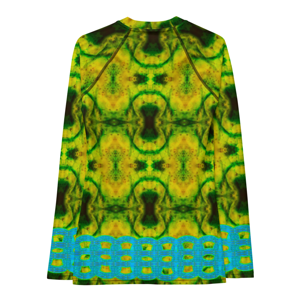 Maximize your athletic performance and protect your skin with our Rash Guard! With a slim fit, flat seams, and long body, this versatile long-sleeve top not only looks great with its bold print, but it also shields you from the elements. Let your creativity shine with original designs by artists River Jade Smith and Travis Huffaker.