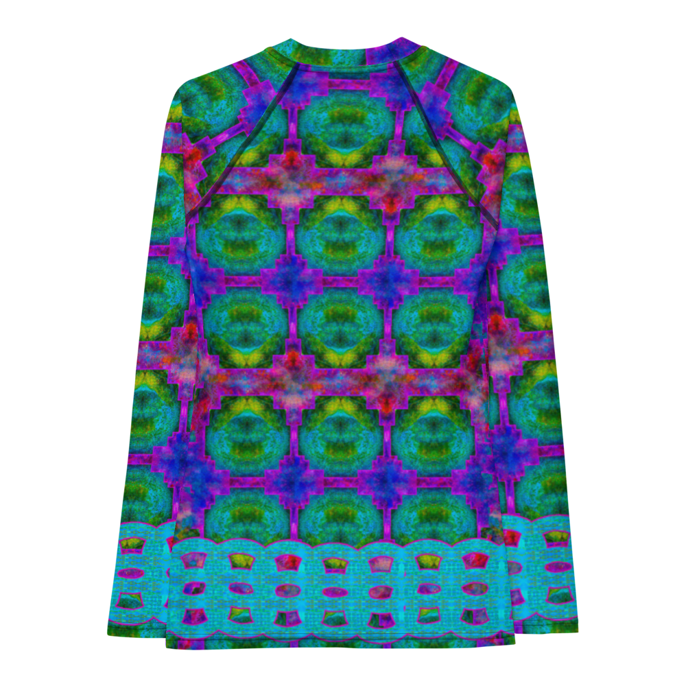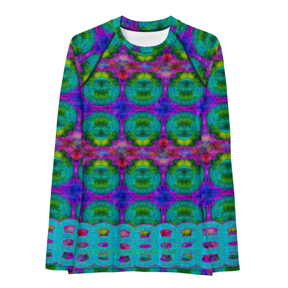 Maximize your athletic performance and protect your skin with our Rash Guard! With a slim fit, flat seams, and long body, this versatile long-sleeve top not only looks great with its bold print, but it also shields you from the elements. Let your creativity shine with original designs by artists River Jade Smith and Travis Huffaker.
