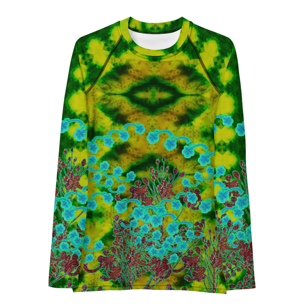 Maximize your athletic performance and protect your skin with our Rash Guard! With a slim fit, flat seams, and long body, this versatile long-sleeve top not only looks great with its bold print, but it also shields you from the elements. Let your creativity shine with original designs by artists River Jade Smith and Travis Huffaker.