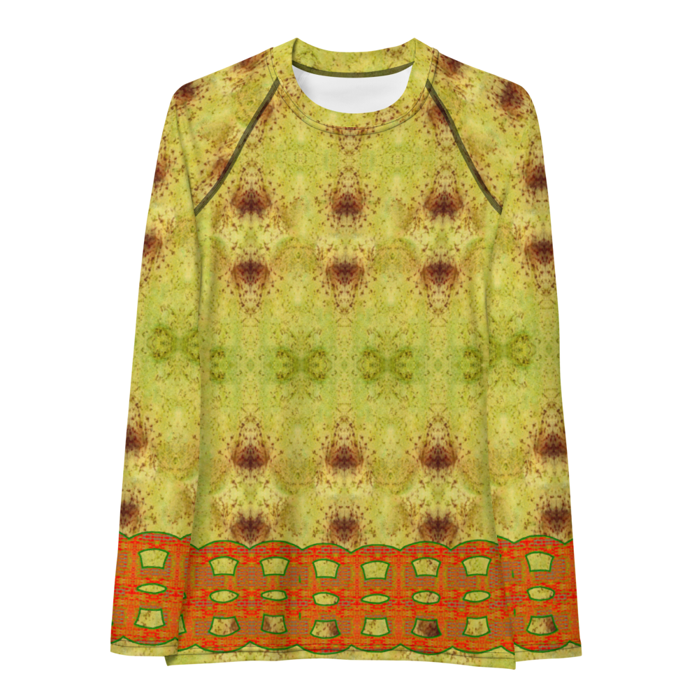 Maximize your athletic performance and protect your skin with our Rash Guard! With a slim fit, flat seams, and long body, this versatile long-sleeve top not only looks great with its bold print, but it also shields you from the elements. Let your creativity shine with original designs by artists River Jade Smith and Travis Huffaker.