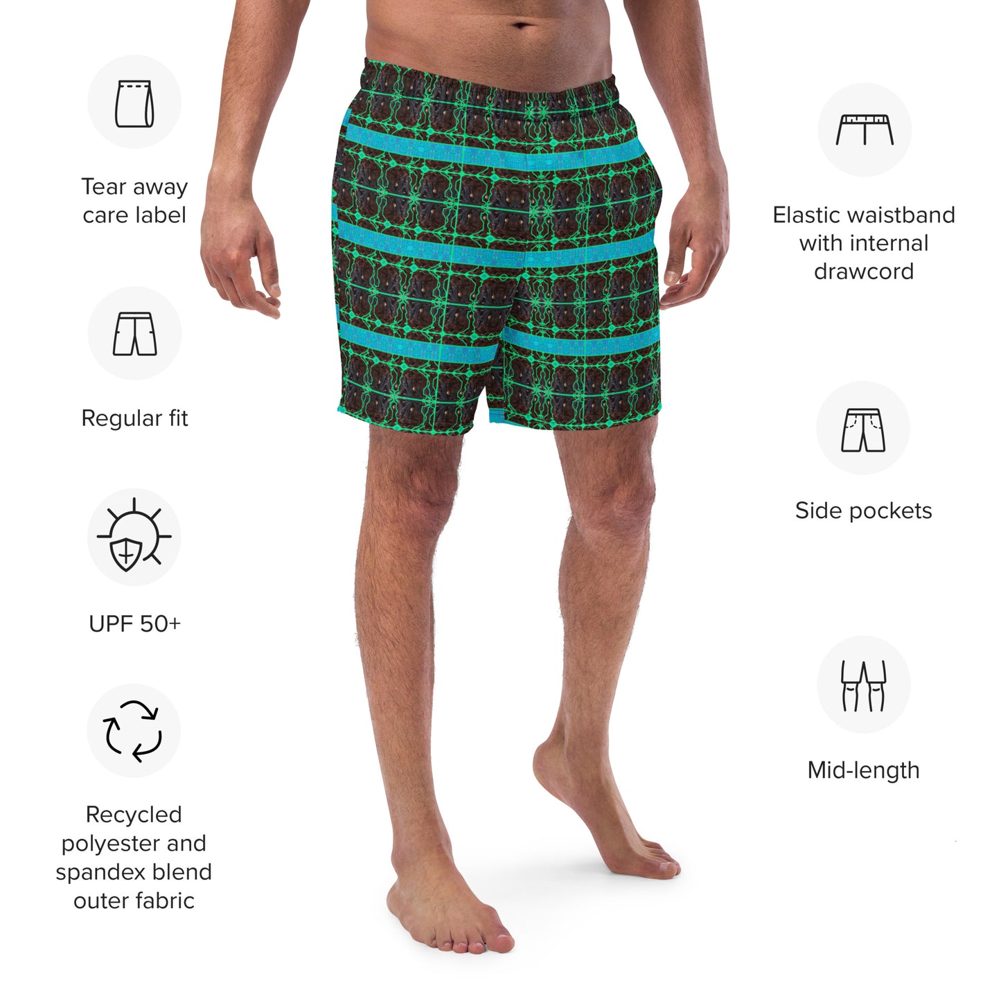 Swim Trunks (His/Virilis) by River Jade Smithy and Printful: "Eco-Conscious Style Meets Artistic Comfort"