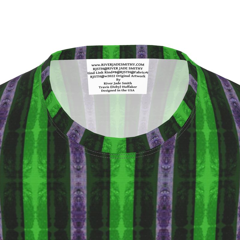 Each T-shirt is printed with original art by River Jade Smith Travis “Doby” Huffaker, offering unique color harmonies and art-imbued presence.