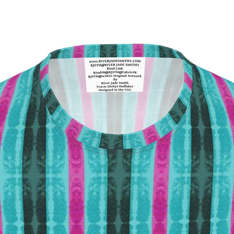 Each T-shirt is printed with original art by River Jade Smith Travis “Doby” Huffaker, offering unique color harmonies and art-imbued presence.