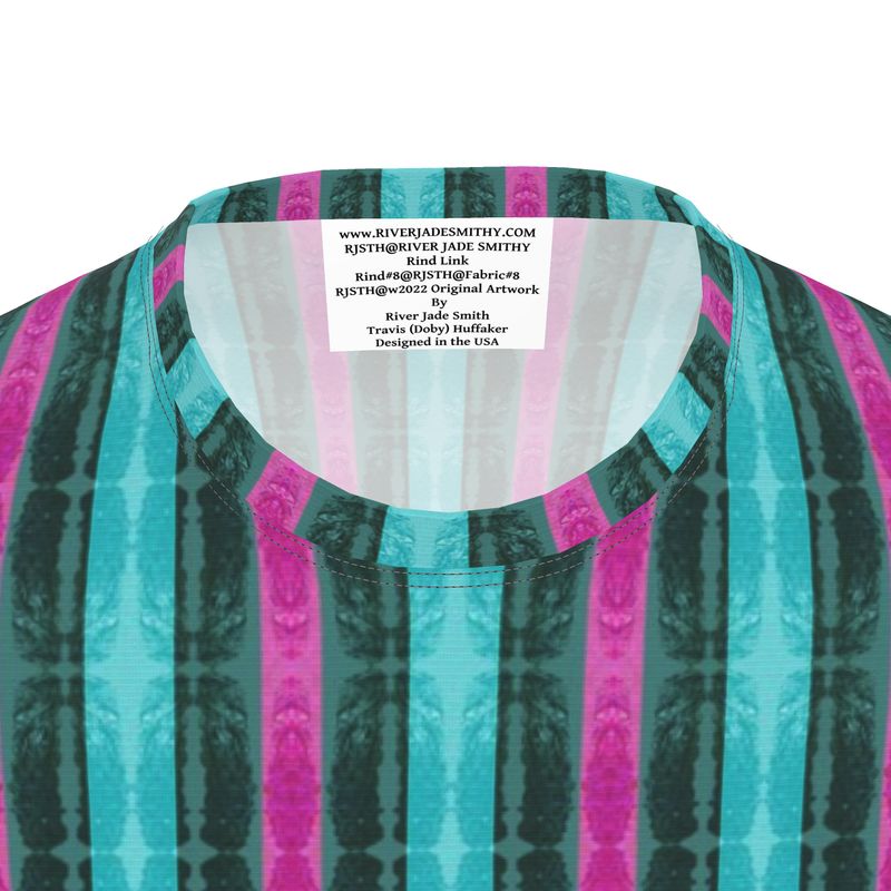Each T-shirt is printed with original art by River Jade Smith Travis “Doby” Huffaker, offering unique color harmonies and art-imbued presence.